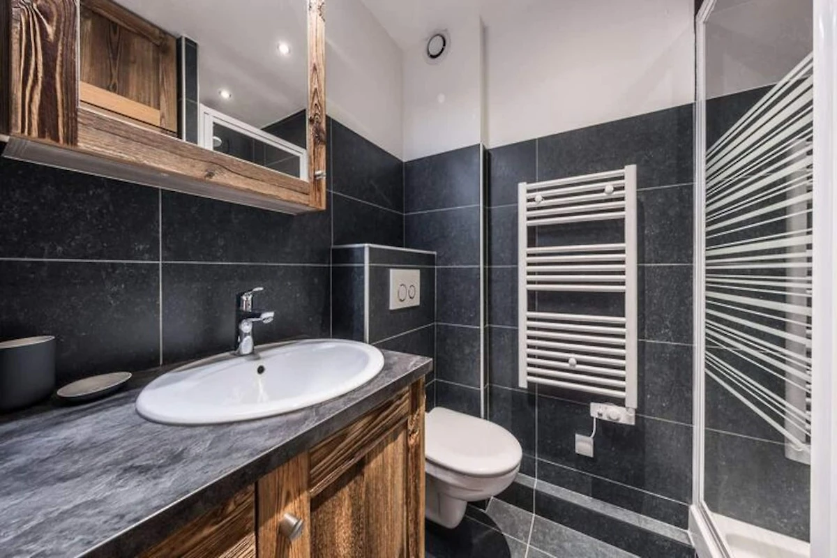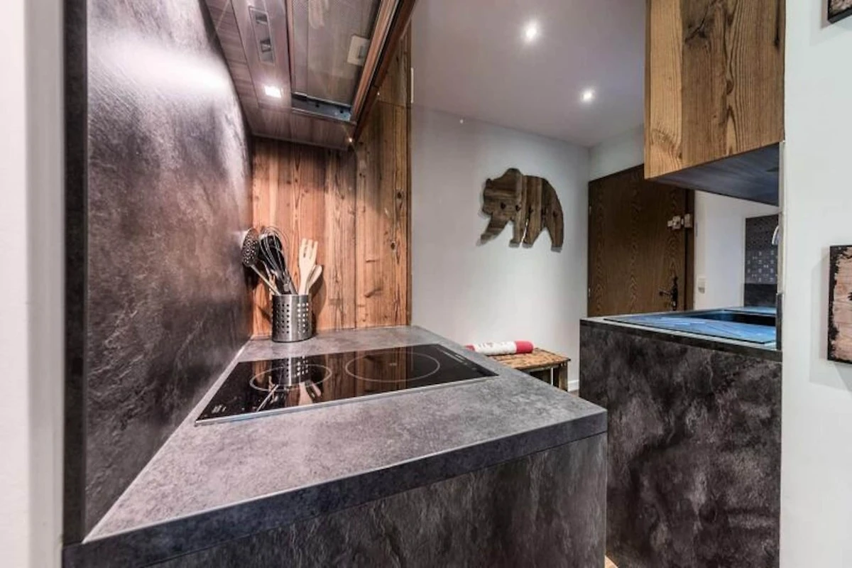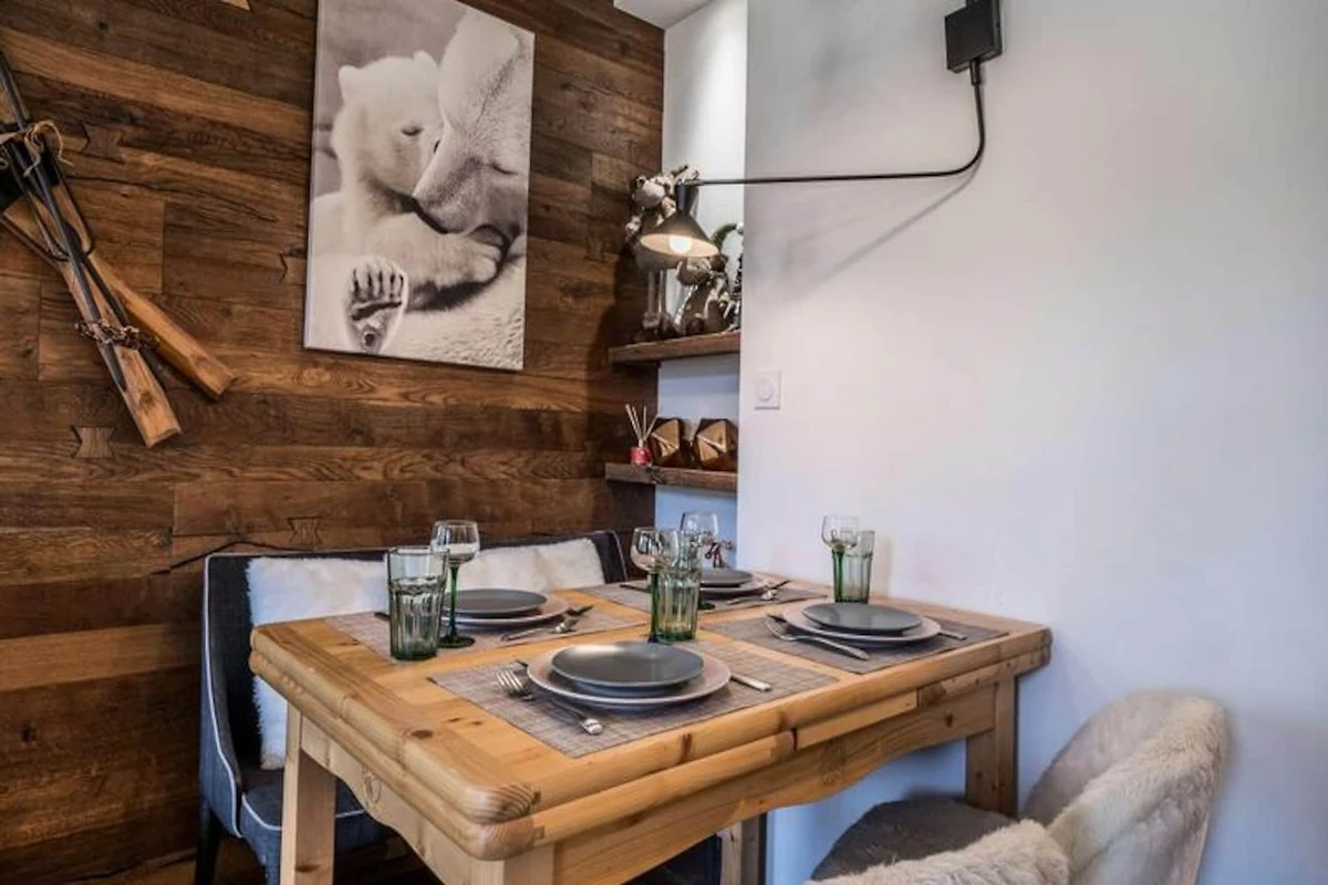 Hoog boven de ongerepte pistes van Courchevel 1850 biedt dit charmante appartement met twee slaapkamers een serene alpenretraite voor wie op zoek is naar zowel avontuur als ontspanning. Stelt u zich voor: wakker worden in de frisse berglucht, uw eigen balkon opstappen om te genieten van het adembenemende uitzicht en u voorbereiden op een dagje skiën in een van 's werelds meest prestigieuze resorts. Gelegen in een rustige buurt, maar toch op steenworp afstand van alle actie, biedt deze accommodatie de perfecte balans tussen gemak en rust. Binnen is het appartement zorgvuldig ontworpen en biedt het plaats aan maximaal vijf gasten. De woon- en eetkamer is warm en uitnodigend, compleet met een tv en toegang tot het balkon om te genieten van de prachtige omgeving. De open keuken is van alle gemakken voorzien, waardoor u na een dag op de piste gemakkelijk stevige maaltijden kunt bereiden. De hoofdslaapkamer beschikt over een comfortabel tweepersoonsbed, een tv, voldoende opbergruimte en zelfs een wastafel voor extra gemak. De tweede slaapkamer, met een eenpersoonsbed en een stapelbed, is ideaal voor kinderen of vrienden die samen reizen. Een moderne badkamer met douche, toilet, wasmachine en droger zorgt voor al het comfort van thuis. Gasten zullen de extra voorzieningen waarderen, zoals een skilocker, linnengoed en opgemaakte bedden bij aankomst, evenals optionele services zoals een privékok of schoonmaak halverwege het verblijf. Met de pistes op loopafstand heeft u moeiteloos toegang tot het legendarische skigebied van Courchevel, bekend om zijn perfect geprepareerde pistes en bruisende après-ski. Of u nu komt om door poedersneeuw te rijden, charmante bergdorpjes te verkennen of gewoon te ontspannen in de schoonheid van de Franse Alpen, dit appartement biedt de ideale uitvalsbasis voor een onvergetelijke vakantie.