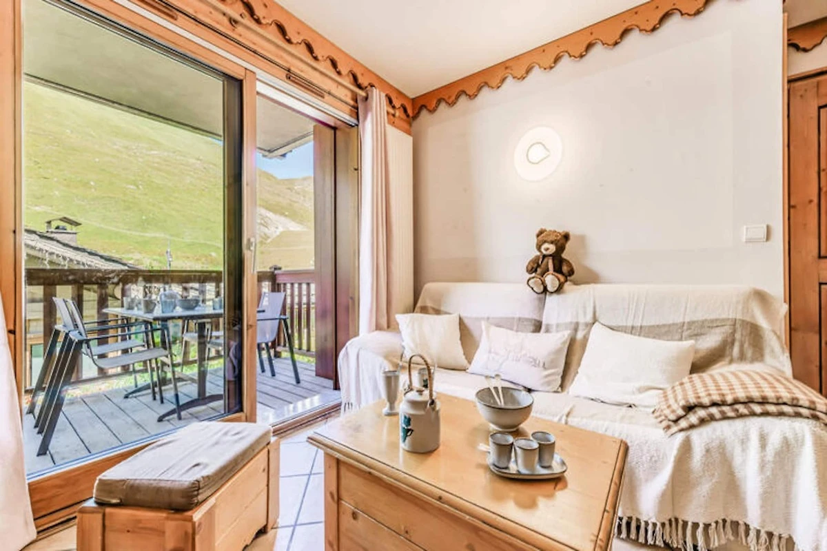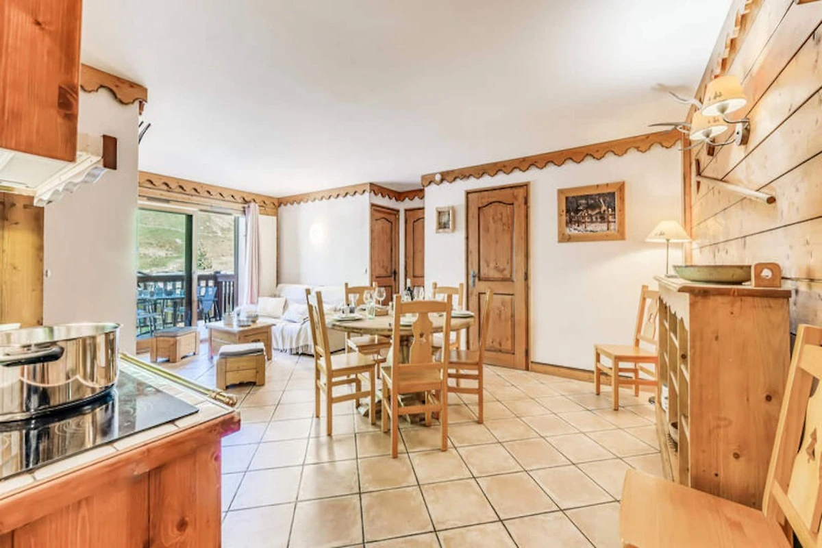 Te midden van de adembenemende hoogten van Tignes Val Claret biedt dit premium alpine appartement een harmonieuze mix van comfort en gemak op een hoogte van 2100 meter. Dankzij het balkon op het westen kunt u genieten van het serene uitzicht op de omliggende bergtoppen terwijl u geniet van de frisse berglucht. De residentie ligt op slechts 500 meter van de pistes, de Franse skischool en lokale winkels, waardoor het een ideale uitvalsbasis is voor zowel wintersporters als zomeravonturiers die de charme van de Alpen zoeken. Binnen beslaat het appartement een royale oppervlakte van 64 vierkante meter en is het zorgvuldig ontworpen voor maximaal zes gasten. De master suite beschikt over twee eenpersoonsbedden die kunnen worden samengevoegd, voldoende opbergruimte en een eigen badkamer met douche. Twee extra slaapkamers bieden comfortabele slaapplaatsen met kledingkasten voor extra gemak. De woonkamer, badend in natuurlijk licht, nodigt uit tot ontspanning met een comfortabele bank, een eethoek en toegang tot het balkon. Een volledig uitgeruste keuken zorgt ervoor dat u na een dag op de piste stevige maaltijden kunt bereiden, terwijl moderne voorzieningen zoals wifi en de inbegrepen hotelservices uw verblijf nog aangenamer maken.\n\nDe residentie beschikt over praktische voorzieningen zoals een eigen skiberging, een lift en een overdekte parkeerplaats in de buurt. Of u nu komt om door poedersneeuw te razen of in de warmere maanden bergpaden te verkennen, de locatie biedt ongeëvenaarde toegang tot het bruisende dorpsleven en de buitenactiviteiten van Tignes. Met beddengoed, handdoeken en de eindschoonmaak inbegrepen, garandeert dit appartement een zorgeloze en onvergetelijke vakantie-ervaring.\n\nKies dit toevluchtsoord vanwege het eersteklas comfort, de adembenemende uitzichten en de nabijheid van alles wat u nodig heeft voor een onvergetelijke vakantie in de bergen.