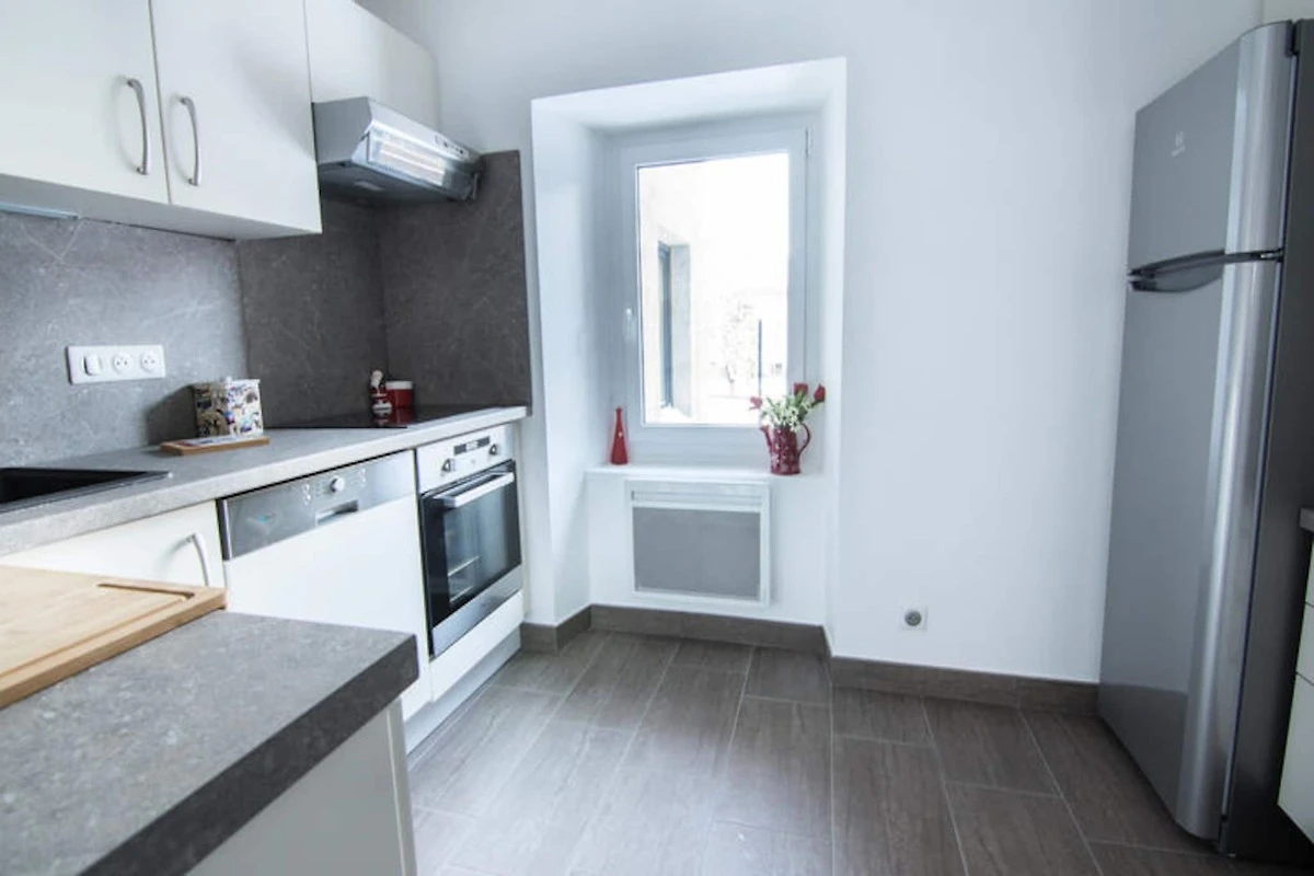 In het hart van het charmante dorp Valloire biedt dit heerlijke alpenverblijf de perfecte mix van comfort en gemak voor uw bergvakantie. Word wakker met de frisse berglucht en geniet van de levendige sfeer van deze pittoreske locatie, waar elk seizoen zijn eigen unieke charme heeft. Of u nu komt voor winterse ski-avonturen of zomerse buitenactiviteiten, deze accommodatie plaatst u er middenin. Op slechts 230 meter van de gondellift Crêt de la Brive en het ontmoetingspunt van de skischool zullen wintergasten de moeiteloze toegang tot de pistes waarderen, terwijl zomergasten het nabijgelegen recreatiecentrum met zwembad, ijsbaan en wellnessruimte kunnen verkennen, op slechts 500 meter afstand. De accommodatie is zorgvuldig ontworpen voor maximaal zes gasten en beschikt over twee gezellige slaapkamers. De slaapkamer op het noorden heeft een tweepersoonsbed, terwijl de ruime slaapkamer op het zuiden een tweepersoonsbed en twee stapelbedden heeft, allemaal met dekbedden voor een goede nachtrust. De aparte keuken is volledig uitgerust met moderne apparatuur, waaronder een oven, magnetron, vaatwasser, koel-/vriescombinatie, keramische kookplaat en wasmachine, waardoor u na een dag vol avontuur gemakkelijk maaltijden kunt bereiden. Ontspan in de gezellige woonkamer, compleet met televisie en wifi, of stap het balkon op het zuiden op om te genieten van de zon en het prachtige uitzicht. Gasten hebben ook toegang tot een gemeenschappelijke tuin met comfortabel tuinmeubilair en ligstoelen, ideaal om te ontspannen in de frisse berglucht. Privéparkeergelegenheid zorgt voor gemak, terwijl de skiopslag een zorgeloos winterverblijf mogelijk maakt. In de buurt vindt u winkels, restaurants en uitgaansgelegenheden, wat bijdraagt aan de aantrekkingskracht van deze centrale locatie. Of u nu houdt van de pistes, wandelpaden of gewoon van de charme van het dorpsleven van Valloire, deze accommodatie belooft een onvergetelijk verblijf in de Franse Alpen.