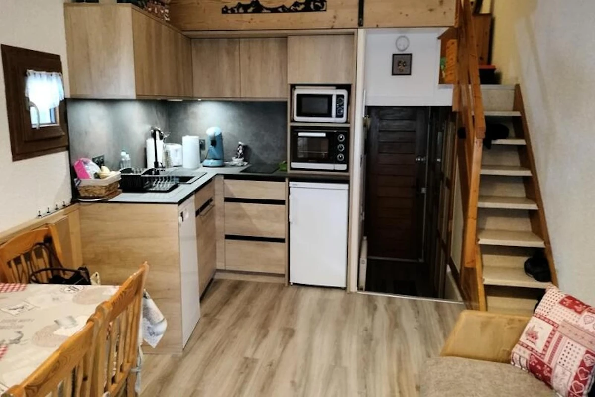 In het hart van het charmante bergdorp Valloire biedt deze gezellige residentie de perfecte mix van comfort en gemak voor uw bergvakantie. Omringd door de majestueuze toppen van de Franse Alpen, ligt de accommodatie op slechts 300 meter lopen van de gondellift Crêt de la Brive en het verzamelpunt van de skischool, waardoor het een ideale keuze is voor wintersporters. Tijdens de zomermaanden komt de levendige dorpssfeer tot leven met activiteiten en het recreatiecentrum met een zwembad, ijsbaan en wellnessruimte ligt op slechts 600 meter afstand. De residentie is zorgvuldig ontworpen voor maximaal vier gasten, met een mezzanine met een comfortabel tweepersoonsbed en een woonkamer met een slaapbank. De kitchenette is voorzien van moderne voorzieningen zoals een oven, magnetron, vaatwasser, koelkast en inductiekookplaat, zodat u na een dag vol avontuur alles bij de hand heeft om heerlijke maaltijden te bereiden. Ontspan in de gezellige lounge met televisie en wifi, of kom tot rust op het balkon op het zuiden, genietend van de frisse berglucht en het adembenemende uitzicht. De badkamer is uitgerust met een bad, wastafel, föhn en toilet voor uw gemak. Gelegen in het hart van Valloire, vindt u winkels, restaurants en lokale bezienswaardigheden op slechts een steenworp afstand. Of u nu in de winter over ongerepte pistes skiet of in de zomer schilderachtige wandelpaden verkent, deze residentie plaatst u midden in het centrum. Met een skiberging, lift en gedeelde parkeergelegenheid wordt uw verblijf nog zorgelozer. Ontdek de charme van Valloire en creëer onvergetelijke herinneringen in dit idyllische alpenverblijf.
