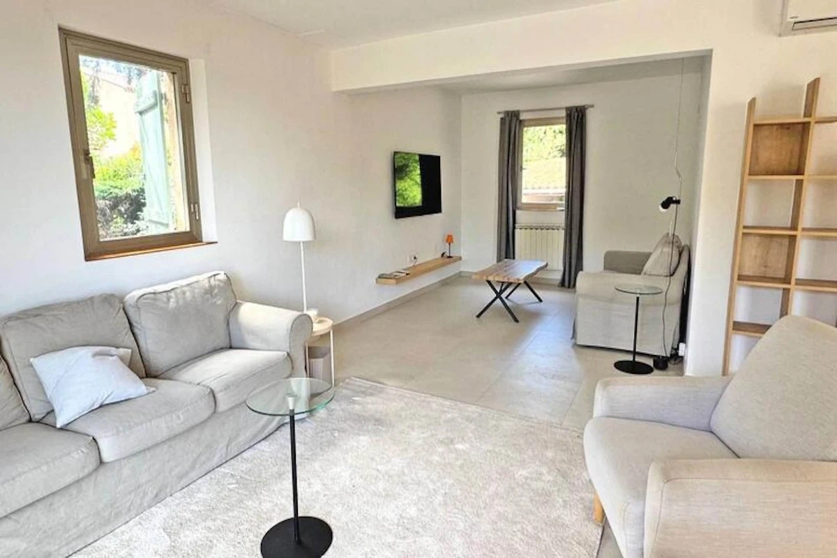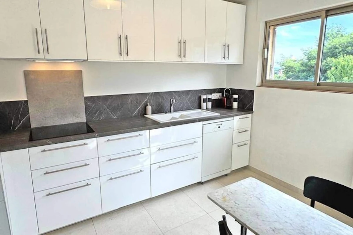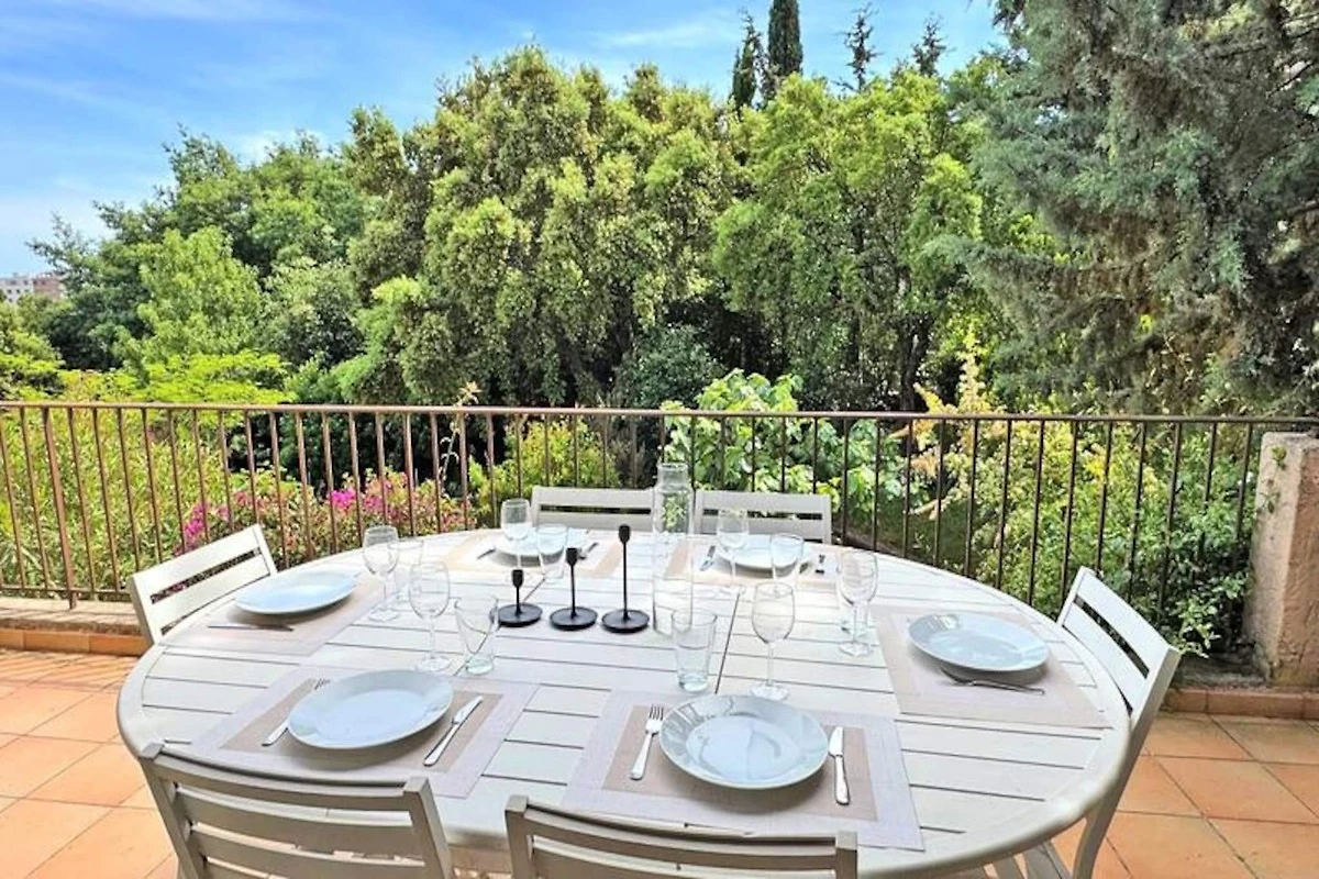 In het serene Grand Pin Estate biedt dit prachtig gerenoveerde vierkamerappartement een idyllisch toevluchtsoord voor gezinnen of vrienden die op zoek zijn naar een mix van modern comfort en kustcharme. Op slechts 1,3 km van het stadscentrum en het strand combineert deze gelijkvloerse woning gemak met rust, waardoor het de perfecte uitvalsbasis is voor uw mediterrane vakantie. Stelt u zich eens voor: wakker worden met gedeeltelijk uitzicht op zee, genieten van een ontbijt op het ruime terras van 30 m² en uw dag plannen in de zonovergoten omgeving.