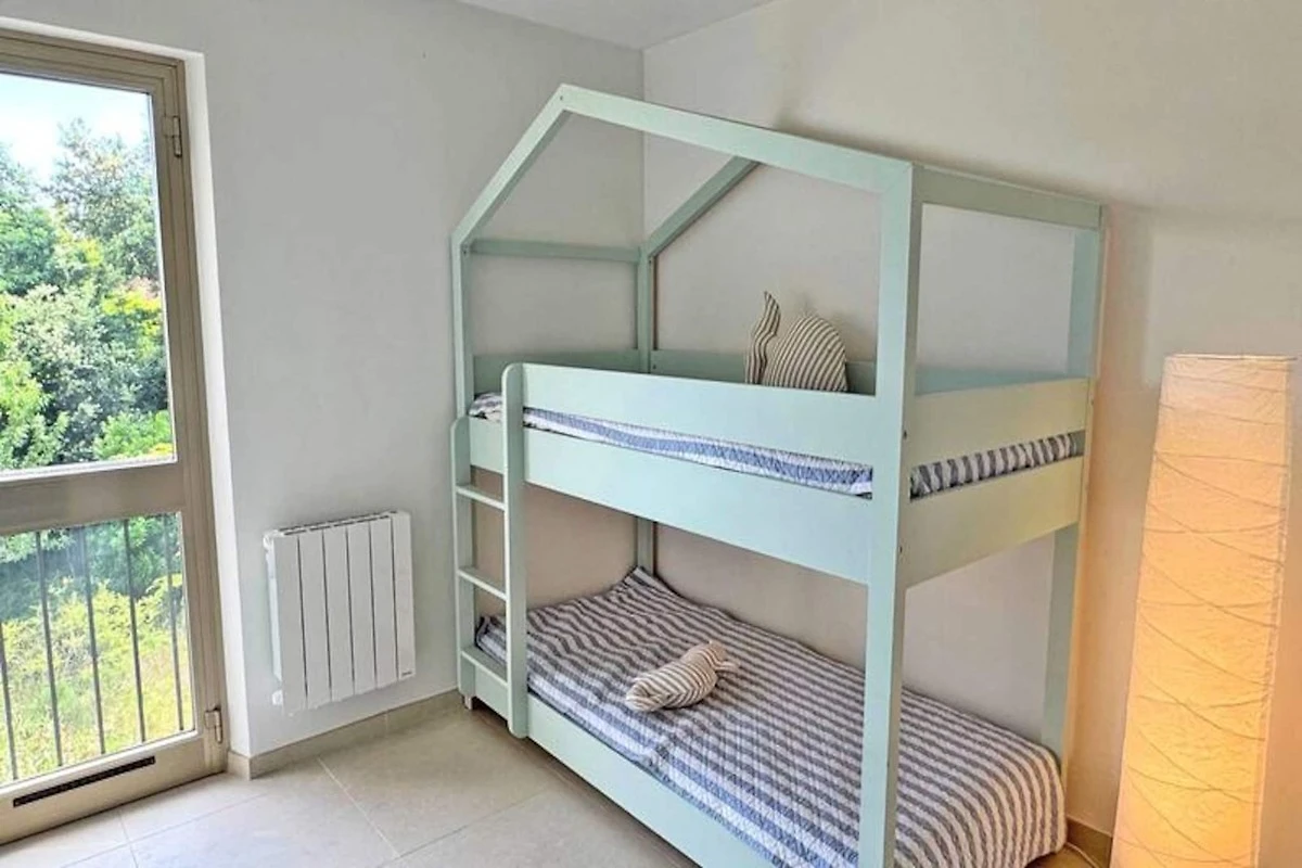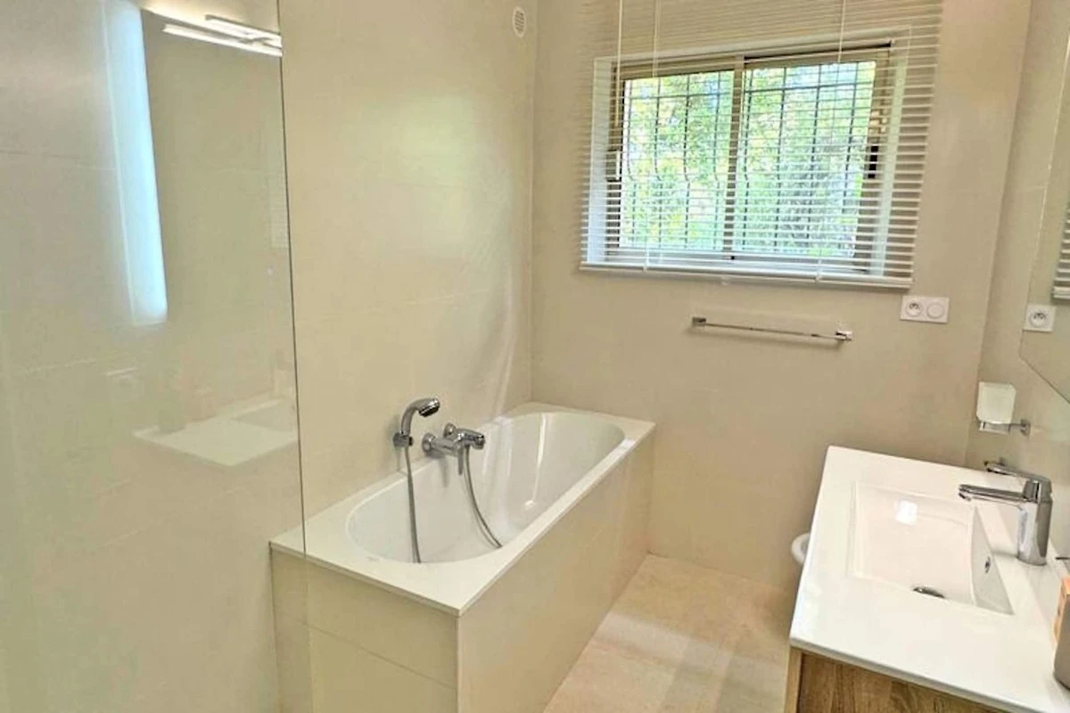 Het appartement beschikt over een lichte woonkamer met airconditioning, een eetgedeelte, een lounge en een volledig uitgeruste keuken met hoogwaardige apparatuur, zoals een Amerikaanse koelkast, inductiekookplaat en een Nespresso-apparaat. Drie zorgvuldig ontworpen slaapkamers zorgen voor een rustgevende nachtrust: twee met een tweepersoonsbed en één met een stapelbed, ideaal voor kinderen. De hoofdslaapkamer beschikt over een eigen badkamer met douche, terwijl de hoofdbadkamer een luxe inloopdouche en een bad heeft. Extra voorzieningen zoals een wasruimte, wifi geschikt voor werken op afstand en een eigen parkeerplaats voor twee auto's zorgen voor een zorgeloos verblijf.