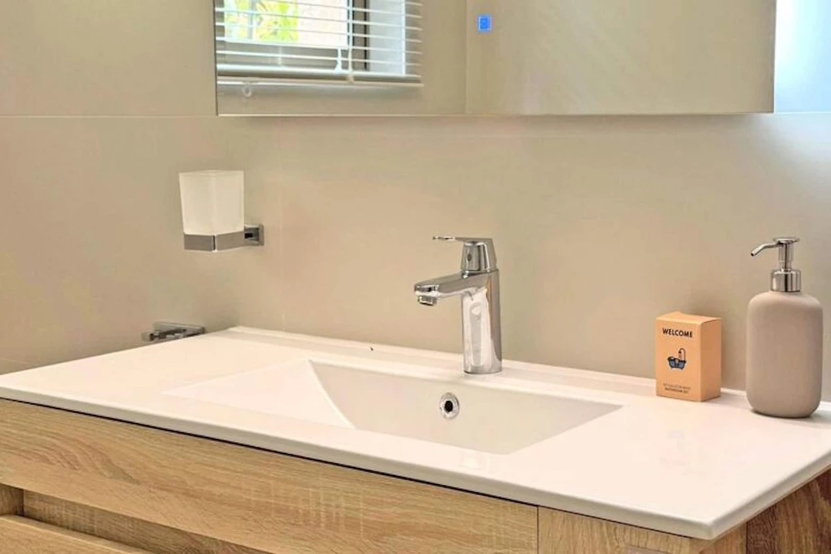Met zijn moderne design, toplocatie en doordachte voorzieningen belooft dit appartement in Grand Pin Estate een onvergetelijke vakantie-ervaring. Huisdieren zijn op verzoek welkom, waardoor het een ideale keuze is voor het hele gezin. Boek uw verblijf en creëer blijvende herinneringen aan de prachtige Middellandse Zeekust.