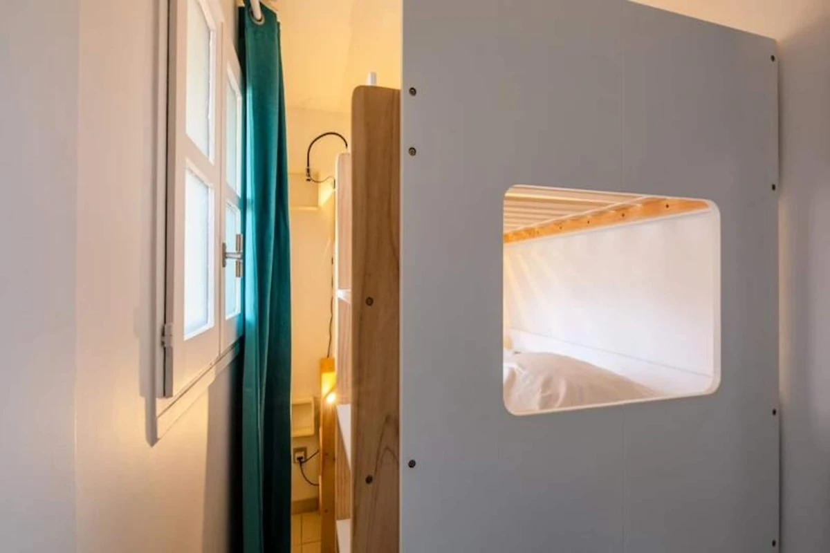 Het appartement is ontworpen voor comfort en gemak en biedt plaats aan maximaal zes gasten, met een knusse slaapkamer met tweepersoonsbed, twee eenpersoonsstapelbedden voor kinderen en een slaapbank in de woonkamer. De volledig uitgeruste keuken nodigt u uit om verse, lokale lekkernijen te bereiden, terwijl de moderne badkamer en het aparte toilet zorgen voor een zorgeloos verblijf. Airconditioning, wifi en satelliet-tv dragen bij aan het huiselijke gevoel, terwijl doordachte details zoals een wasmachine, droger en natuurlijke toiletartikelen je ervaring naar een hoger niveau tillen. Gasten hebben ook toegang tot een gemeenschappelijk zwembad, een tennisbaan en een privéparkeerplaats, waardoor dit een ware oase van rust is.