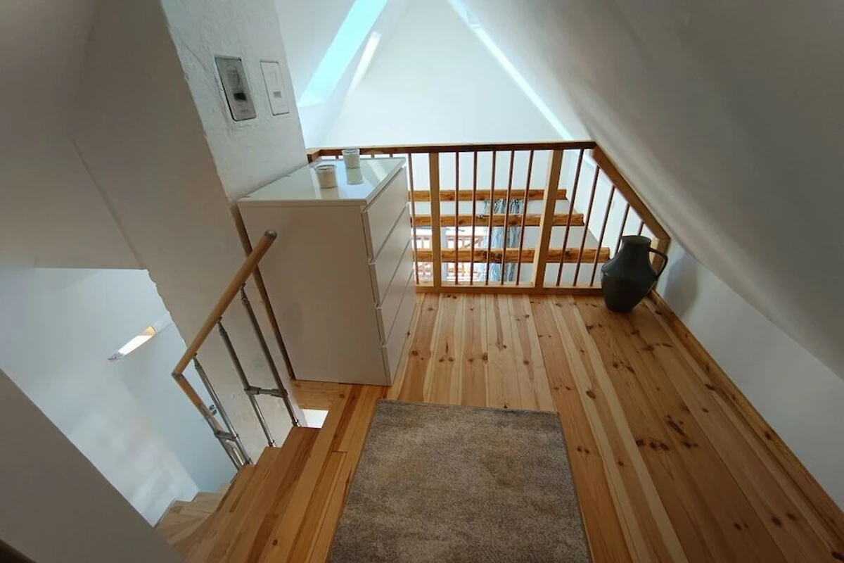 De slaapkamers bevinden zich op de mezzanine en in het noordelijke deel van het appartement.