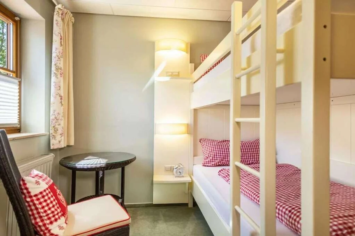 Op de 1e etage: (slaapkamer(, , 2-pers. bed), slaapkamer(, , stapelbed))