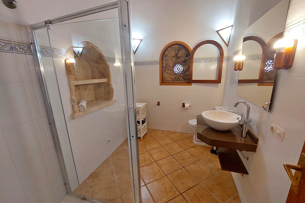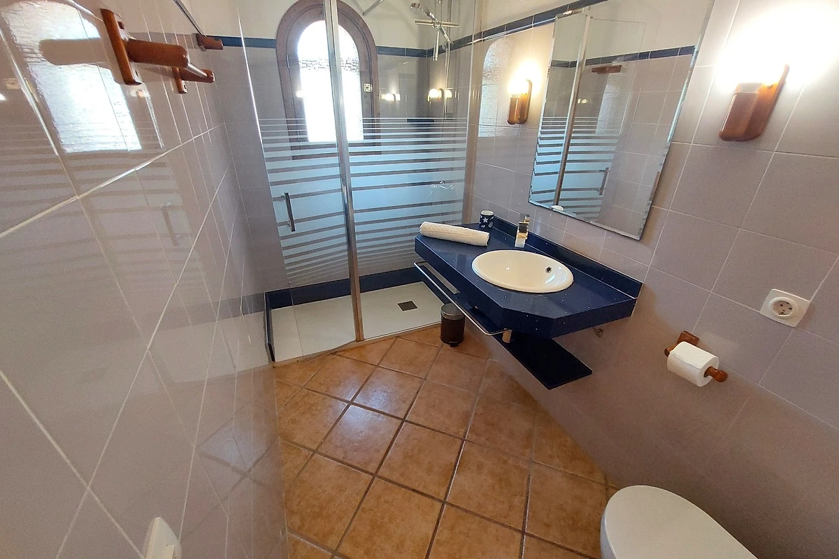 Het landgoed biedt plaats aan maximaal 8 personen en beschikt over vier comfortabele slaapkamers met airconditioning. Op de begane grond bevindt zich een lichte woon- en eetkamer, een volledig uitgeruste keuken evenals een slaapkamer met tweepersoonsbed (1,50 x 2,00 m) en een aangrenzende badkamer en suite met bad. Op de bovenverdieping bevinden zich drie verdere slaapkamers: een tweepersoonskamer met badkamer en suite evenals twee slaapkamers met eenpersoonsbedden, die een aparte badkamer met douche delen.