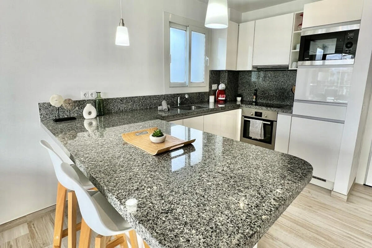 Het onlangs gerenoveerde appartement combineert modern design met ultiem comfort. De open indeling beschikt over een chique keuken die naadloos aansluit op de woonkamer, wat een gastvrije ruimte creëert om te ontspannen na een dag vol ontdekkingen. De slaapkamer is een serene oase, aangevuld met een moderne badkamer met douche. Grote ramen overspoelen het interieur met natuurlijk licht, wat de luchtige sfeer versterkt. Gasten profiteren ook van toegang tot twee gedeelde zwembaden, waaronder één speciaal voor kinderen, perfect om af te koelen onder de Andalusische zon. Gelegen in een rustige woonwijk, biedt het appartement een oase van rust, terwijl het toch op slechts een steenworp afstand ligt van de bruisende energie van Puerto Banús en Marbella. Voor extra gemak is er een beveiligde parkeerplaats beschikbaar, waardoor u gemakkelijk de omgeving kunt verkennen, van de historische straten van de oude binnenstad van Marbella tot de schilderachtige schoonheid van de Costa del Sol.