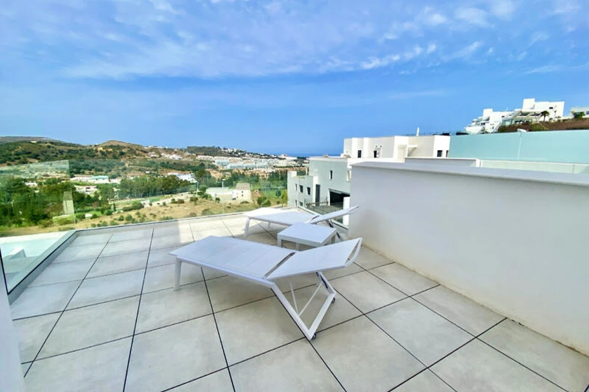 Stel je voor dat je wakker wordt met een zachte mediterrane bries en je eigen terras opstapt om te genieten van een panoramisch uitzicht op de Sierra de Mijas en de glinsterende zee. Dit moderne en elegante appartement is perfect gelegen naast La Noria Golf en op slechts 2 km van het charmante dorpje La Cala en zijn goudgele stranden. Of je nu een golfliefhebber bent of gewoon op zoek bent naar een rustig toevluchtsoord, deze gloednieuwe residentie biedt de ideale mix van ontspanning en recreatie.