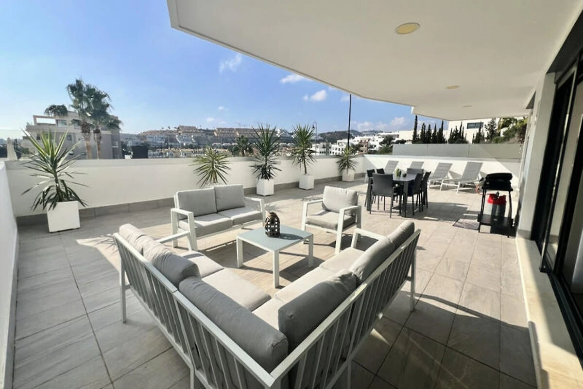 Het ruime interieur beschikt over een open woon- en eetkamer die naadloos aansluit op een volledig uitgeruste keuken, waardoor het ideaal is om gasten te ontvangen of te genieten van rustige familiediners. De master suite beschikt over een eigen badkamer met zowel een bad als een douche, evenals een kleedkamer voor extra gemak. Twee extra slaapkamers, waarvan één met een en-suite badkamer, zorgen voor comfort en privacy voor alle gasten. Stap buiten op het ruime terras, compleet met een overdekt gedeelte, ligstoelen en een gasbarbecue, waar u kunt genieten van de zon of buiten kunt dineren onder de sterrenhemel. Het Dream Gardens-complex biedt een scala aan eersteklas voorzieningen, waaronder een groot buitenzwembad dat seizoensgebonden geopend is, een fitnessruimte, een speelkamer voor kinderen en een tafeltennisruimte. Tijdens de koelere maanden kunt u genieten van het binnenzwembad, de hamam en de sauna. Met wifi en een beveiligde ondergrondse parkeergarage is aan elk detail gedacht voor uw gemak. Het pittoreske dorpje La Cala de Mijas, met zijn prachtige stranden en bruisende lokale leven, ligt op slechts 500 meter afstand, en een supermarkt is gunstig gelegen aan de overkant van de straat.