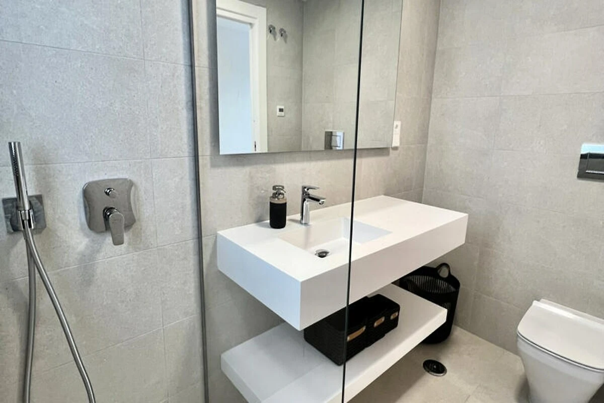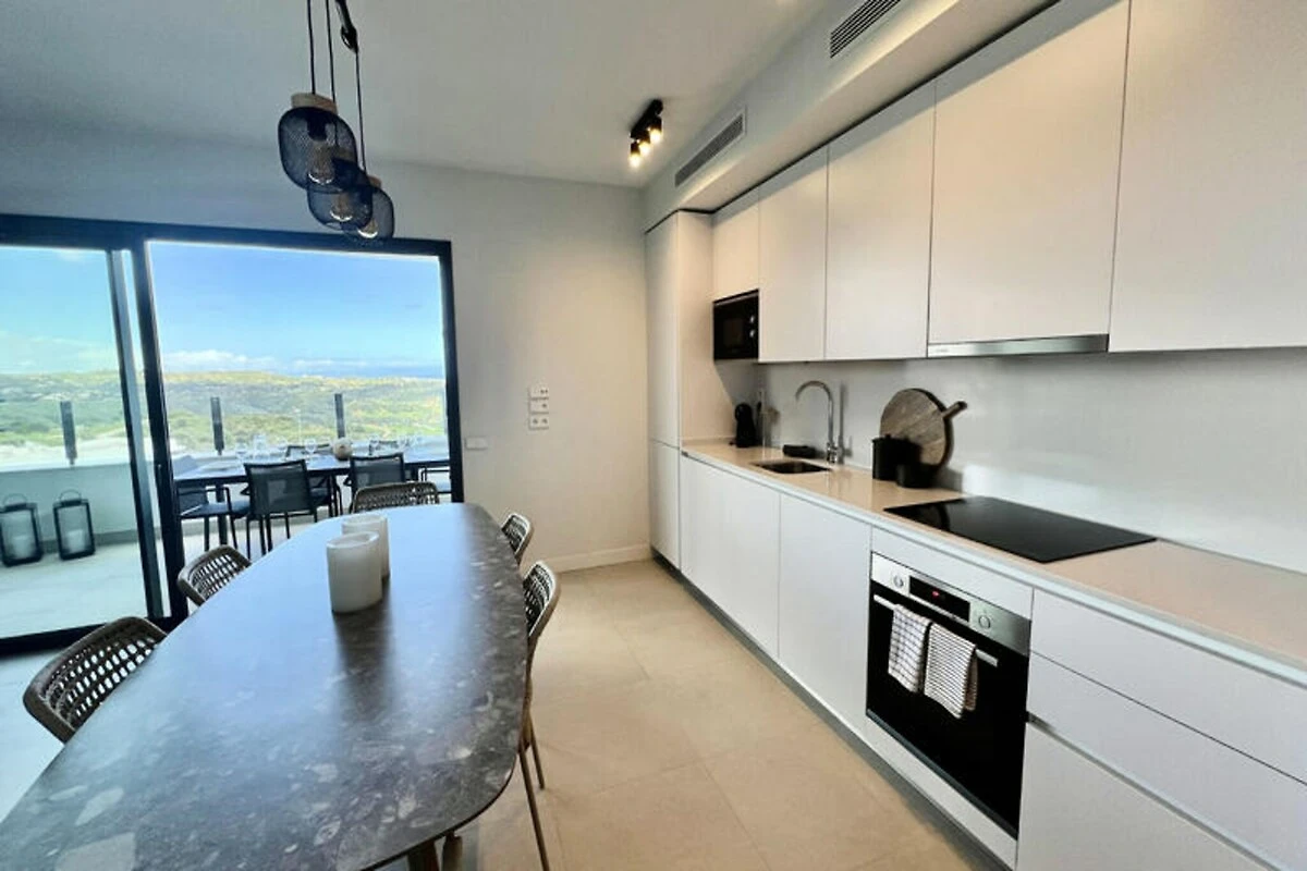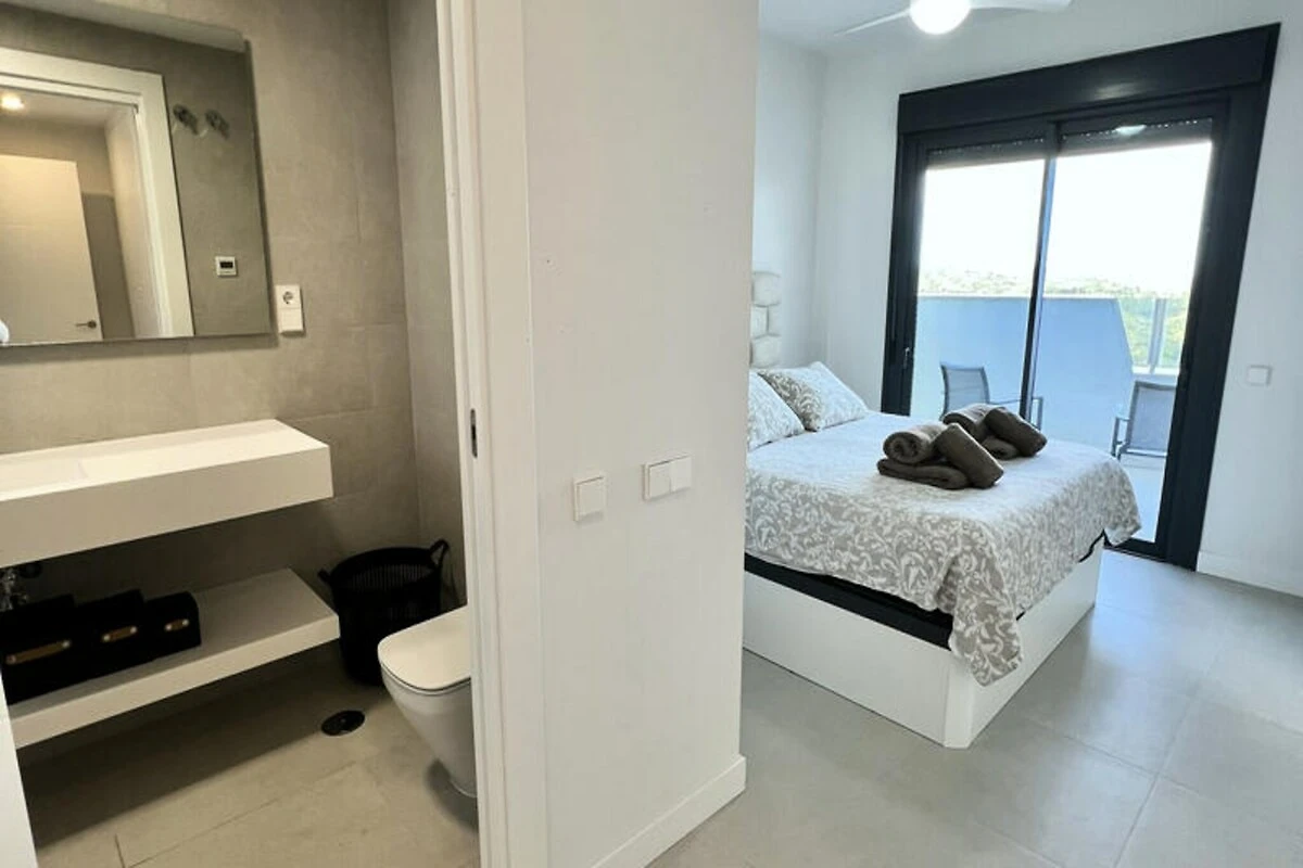 Stel je voor dat je wakker wordt met de gouden tinten van de Andalusische zon die je luxe appartement binnenstroomt, met het serene uitzicht op de Middellandse Zee en de weelderige groene golfbanen die zich voor je uitstrekken. Ipanema, een prachtige nieuwbouwresidentie, biedt een perfecte mix van moderne elegantie en natuurlijke schoonheid, gelegen nabij het charmante dorpje La Cala de Mijas. Of je nu komt om te ontspannen of om de omgeving te verkennen, deze woning is jouw toegangspoort tot een onvergetelijke Spaanse vakantie. Stap binnen en ontdek een master suite, compleet met een kleedkamer en een en-suite badkamer met een inloopregendouche. Twee extra tweepersoonsslaapkamers en een tweede stijlvolle badkamer zorgen voor comfort voor alle gasten. De open woonkamer, met een strakke, moderne keuken, baadt in natuurlijk licht en komt direct uit op een ruim terras. Hier kun je genieten van het adembenemende uitzicht terwijl je een maaltijd bereidt op de elektrische bakplaat of gewoon geniet van de warme mediterrane bries. Het Ipanema-complex tilt uw verblijf naar een hoger niveau met twee buitenzwembaden, een luxe spa met een verwarmd binnenzwembad, sauna en hamam, en een volledig uitgeruste fitnessruimte. Of u nu de voorkeur geeft aan een verfrissende duik, een verjongende spasessie of een verkwikkende workout, de faciliteiten bieden voor elk wat wils. Gelegen op slechts een steenworp afstand van het pittoreske La Cala de Mijas met zijn vele winkels, restaurants en stranden, evenals de beroemde golfbanen Calanova en La Cala, is deze accommodatie een oase van rust en avontuur. Laat Ipanema uw thuis weg van huis zijn, waar elk detail is ontworpen om onvergetelijke herinneringen te creëren onder de Andalusische hemel.