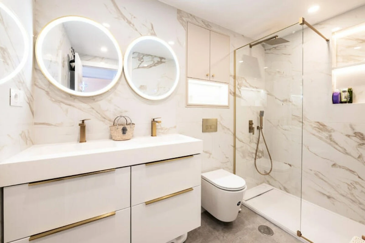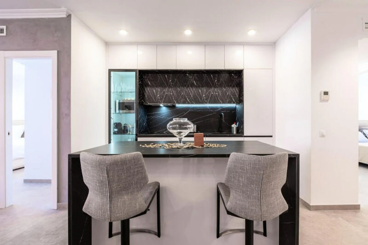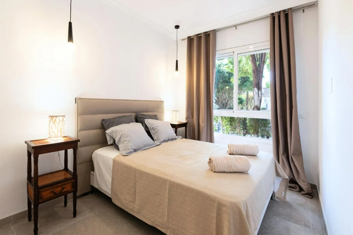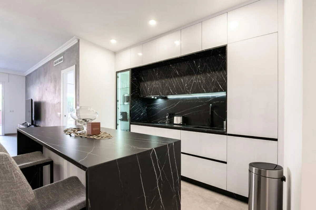 Stap in een wereld van elegantie en ontspanning in dit moderne, onlangs gerenoveerde appartement in de prestigieuze residentie El Embrujo Playa, vlakbij Puerto Banús. Perfect geschikt voor gezinnen, stellen of kleine groepen. Deze accommodatie op de begane grond combineert een moderne stijl met een onovertroffen locatie op slechts 700 meter van het gouden zand van de Middellandse Zee. Of u nu op zoek bent naar een rustige ontsnapping of een bruisend nachtleven, deze accommodatie biedt het beste van twee werelden. Het appartement beschikt over drie ruime slaapkamers en drie badkamers, waardoor comfort en privacy voor alle gasten gegarandeerd zijn. De hoofdslaapkamer is voorzien van een smart-tv, terwijl alle slaapkamers voldoende opbergruimte bieden met ingebouwde kasten. De open keuken, compleet met een stijlvol kookeiland en moderne apparatuur, nodigt u uit om thuis heerlijke maaltijden te bereiden. De lichte en luchtige woon- en eetkamer komt uit op een gemeubileerd privéterras met directe toegang tot weelderige gemeenschappelijke tuinen en schitterende zwembaden – ideaal om buiten te ontspannen of te genieten van tijd met het gezin. Centrale airconditioning en snelle wifi zorgen voor een zorgeloos en comfortabel verblijf. El Embrujo Playa is een gated community die bekend staat om zijn serene sfeer, uitgestrekte tuinen en veilige wandelpaden, waardoor het perfect is voor gezinnen met kinderen. Buiten de residentie wacht de glamour van Puerto Banús met luxe boetieks, gastronomische restaurants en levendige strandclubs zoals Ocean Club en Sala Beach. Voor een meer relaxte ervaring kunt u naar het nabijgelegen San Pedro Alcántara wandelen of genieten van Andalusische zeevruchten bij lokale chiringuitos. Of u nu een romantisch uitje, een gezinsvakantie of een langer verblijf plant, dit appartement biedt een harmonieuze mix van comfort, stijl en een toplocatie. Creëer onvergetelijke herinneringen in Marbella, waar de mediterrane bries en Andalusische charme de basis vormen voor uw perfecte vakantie.