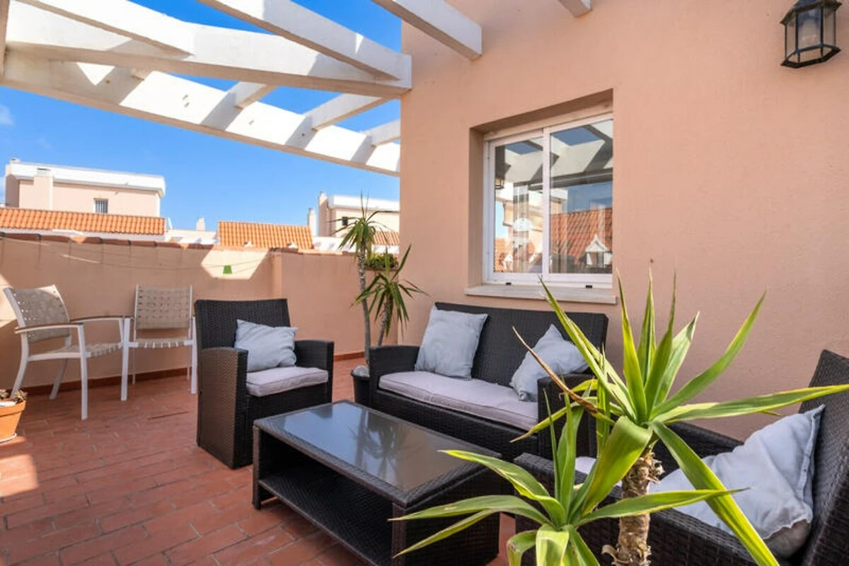In het hart van San Luis de Sabinillas, waar de mediterrane bries zich vermengt met de levendige charme van een kustplaats, biedt dit heerlijke appartement een serene ontsnapping voor maximaal vier gasten. Stelt u zich voor: wakker worden met het zachte geluid van de golven en het ruime terras van 36 m² opstappen om te genieten van de zonovergoten sfeer. Of u nu komt voor een ontspannende retraite of een actief avontuur aan zee, deze accommodatie nodigt u uit om het beste van het Andalusische leven te ervaren. Binnen combineert het appartement comfort en functionaliteit met zijn goed ingerichte indeling. De twee gezellige slaapkamers bieden een oase van rust na een dag vol ontdekkingen, terwijl de keuken met keramische kookplaat volledig is uitgerust met moderne apparatuur, waaronder een vaatwasser, magnetron en koffiezetapparaat, zodat aan al uw culinaire behoeften wordt voldaan. Voorzieningen zoals airconditioning, wifi, satelliet-tv en een wasmachine dragen bij aan het gemak, terwijl het gemeenschappelijke zwembad een verfrissende ontsnapping biedt tijdens warme middagen. Er is parkeergelegenheid in de buurt voor probleemloze toegang gedurende uw verblijf. Op slechts een steenworp afstand vindt u de zandstranden van Playa Sabinillas, perfect om te zonnebaden of een ontspannen wandeling te maken. De levendige straten van het stadje zijn bezaaid met charmante cafés, restaurants zoals La Casita en een goed gesorteerde supermarkt voor uw dagelijkse boodschappen. Golfliefhebbers zullen de nabijheid van Duquesa Golf Club waarderen, op slechts 2 km afstand, terwijl de luchthaven van Malaga gunstig gelegen is op 100 km van de accommodatie, waardoor reizen soepel verloopt. Of u nu geniet van lokale lekkernijen, de pittoreske kustlijn verkent of gewoon ontspant op uw privéterras, dit appartement is uw toegangspoort tot de betoverende schoonheid van de Costa del Sol. Laat de warmte van San Luis de Sabinillas onvergetelijke herinneringen creëren voor uw volgende vakantie.