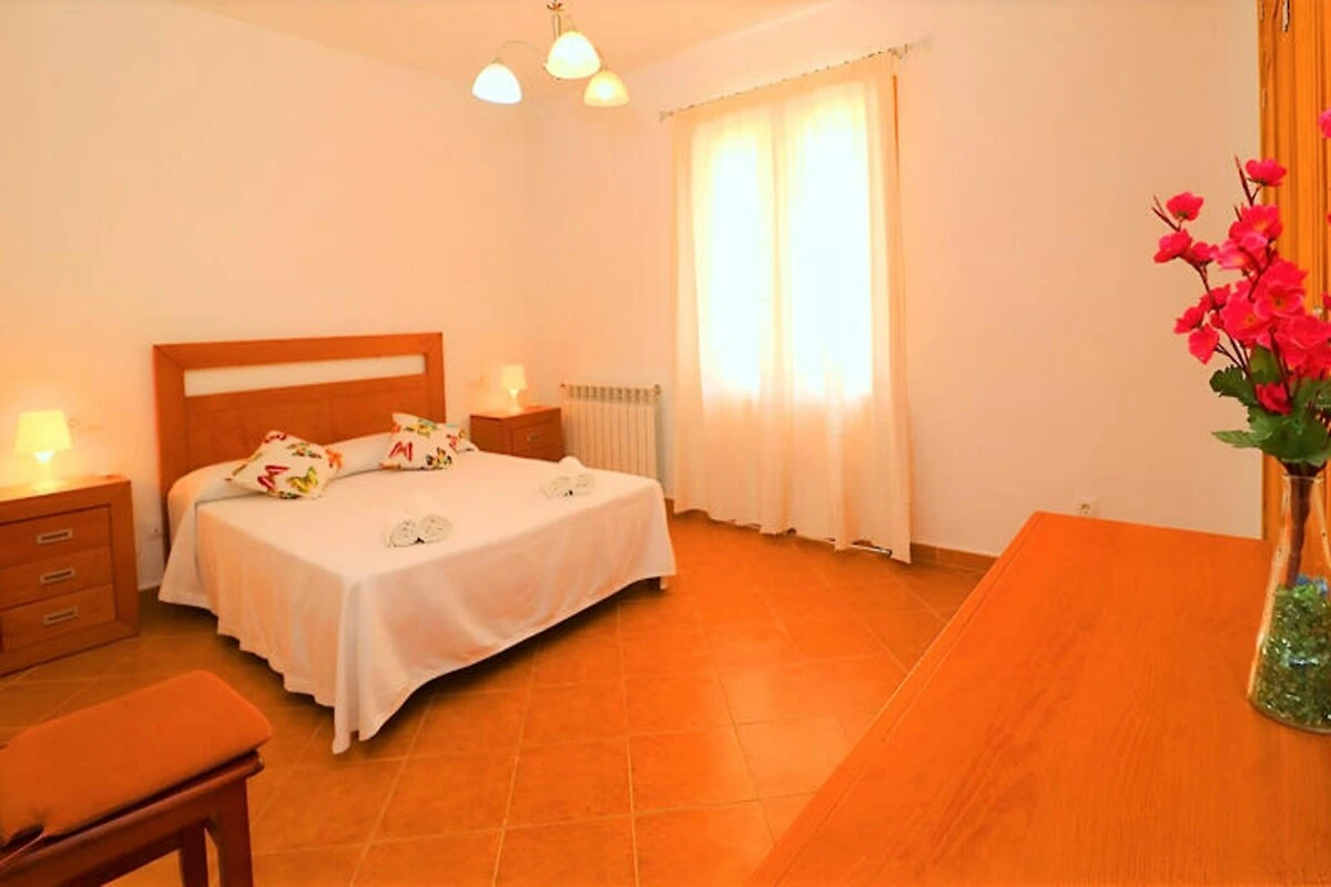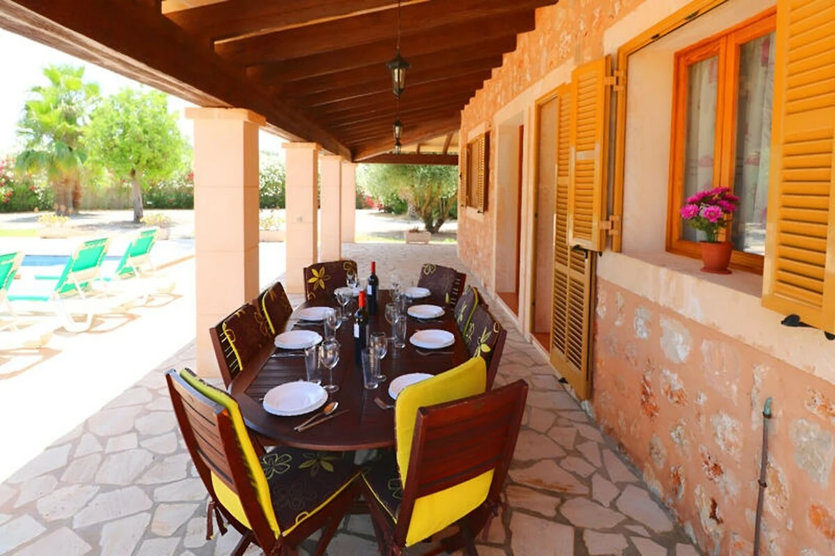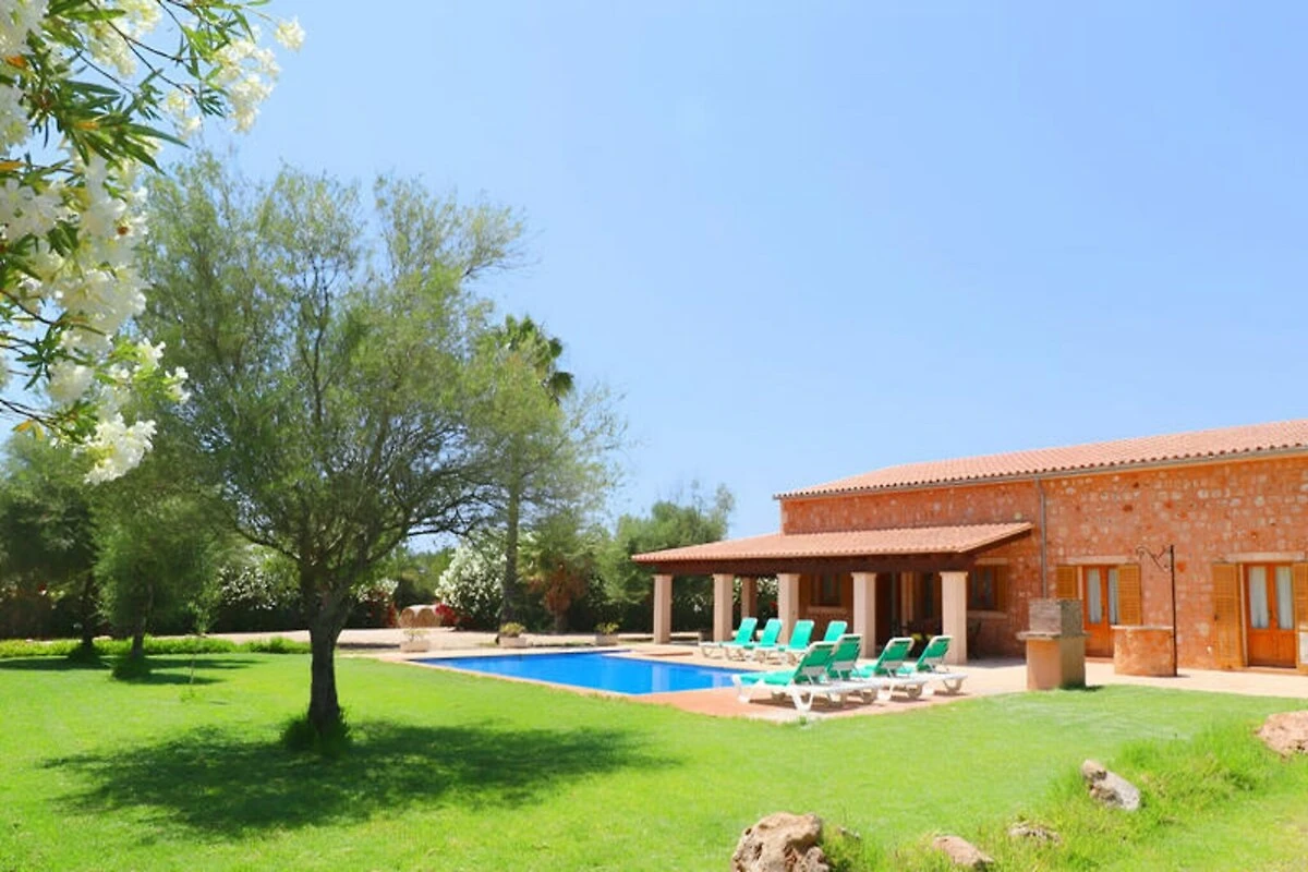In het serene landschap van Zuid-Mallorca, tussen de charmante stadjes Campos en Santanyí, biedt dit prachtige landhuis een rustig toevluchtsoord voor maximaal acht gasten. Omgeven door weelderig groen en op korte rijafstand van enkele van de mooiste stranden van het eiland, waaronder Es Trenc, Ses Covetes, Sa Ràpita en Sa Colònia, is deze accommodatie perfect gelegen voor een ontspannen en onvergetelijke vakantie. Of u nu op zoek bent naar rustige dagen bij het zwembad of avonturen langs de ongerepte kustlijn van Mallorca, dit huis biedt de ideale uitvalsbasis. Binnen beschikt het huis over 250 m² smaakvol ingerichte woonruimte. Vier ruime slaapkamers, twee met een tweepersoonsbed en twee met twee eenpersoonsbedden, zorgen voor een comfortabele accommodatie voor iedereen. Drie badkamers, waarvan één met een douche en twee met een bad, bieden comfort en privacy. De gezellige woon- en eetkamer, uitgerust met satelliet-tv en wifi, nodigt u uit om te ontspannen na een dag vol ontdekkingen. Een volledig uitgeruste keuken maakt het bereiden van maaltijden een plezier, terwijl centrale verwarming zorgt voor comfort tijdens de koudere maanden. Stap naar buiten en ontdek een privé-oase. Het grote zwembad van 10x5m is perfect om af te koelen onder de Mallorcaanse zon, terwijl de omliggende ligstoelen u uitnodigen om te ontspannen en te genieten van de rustige sfeer. Het overdekte terras, compleet met een eettafel voor acht personen, biedt een pittoreske setting voor maaltijden in de buitenlucht met uitzicht op het zwembad en de prachtig onderhouden tuin. Een buitenbarbecue draagt bij aan de charme, waardoor u gemakkelijk kunt genieten van lange avonden onder de sterrenhemel. Dankzij de nabijheid van Campos en Santanyí heeft u toegang tot diverse voorzieningen, waaronder restaurants, supermarkten en lokale markten. Verken de traditionele straten van Campos, proef de authentieke Mallorcaanse keuken of ga naar de nabijgelegen stranden voor onvergetelijke dagen aan zee. Of u nu met familie of vrienden reist, dit landhuis combineert comfort, schoonheid en gemak voor een uitzonderlijke vakantie-ervaring.