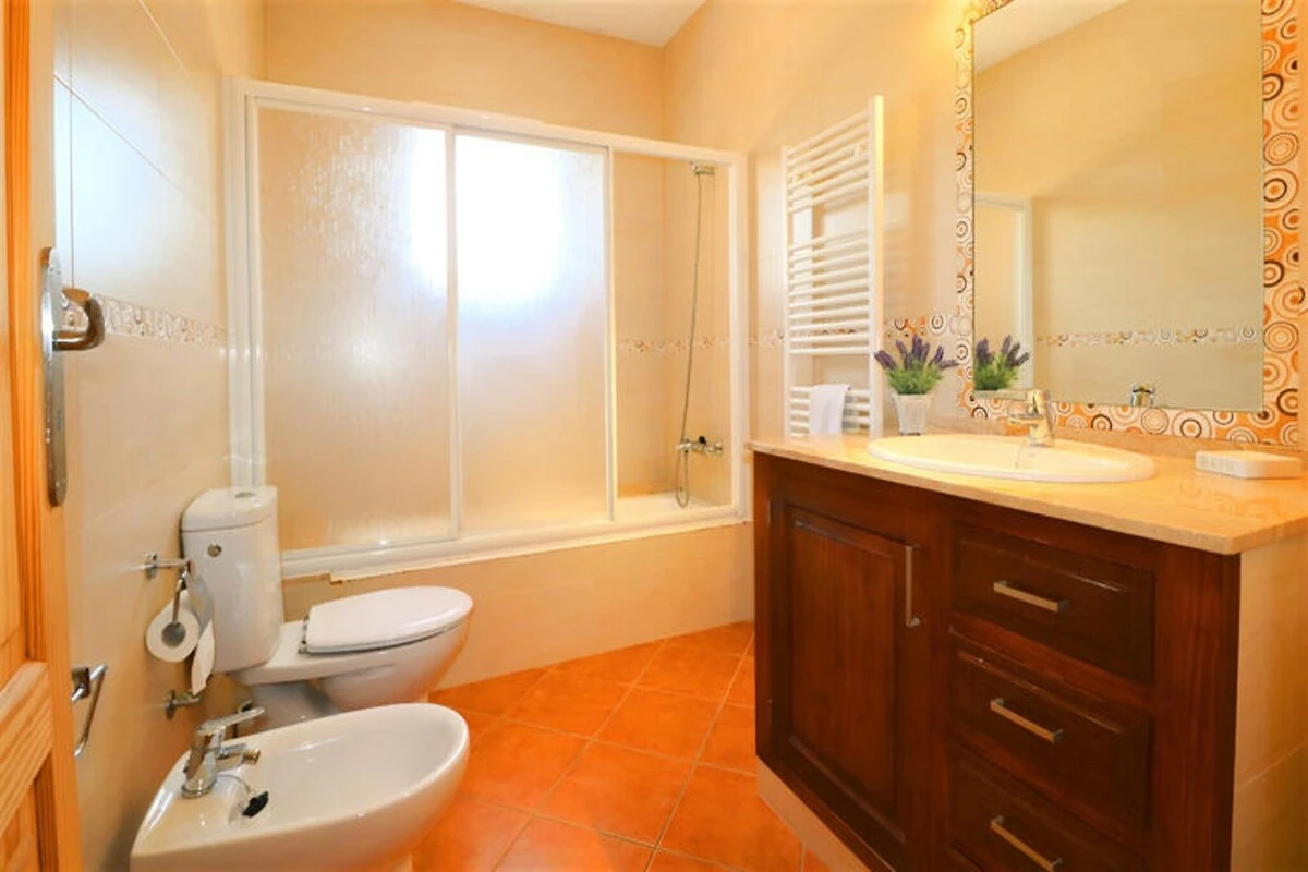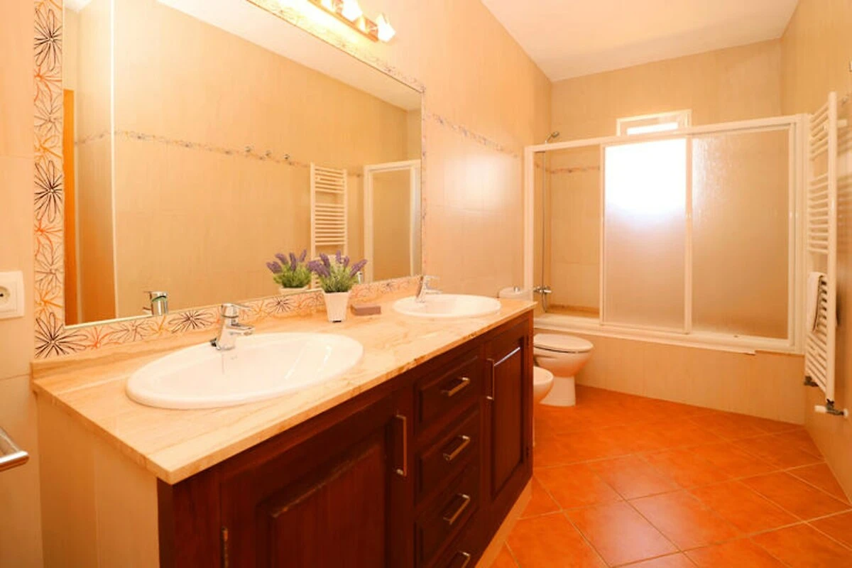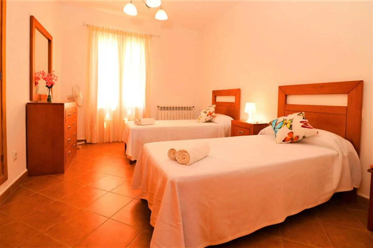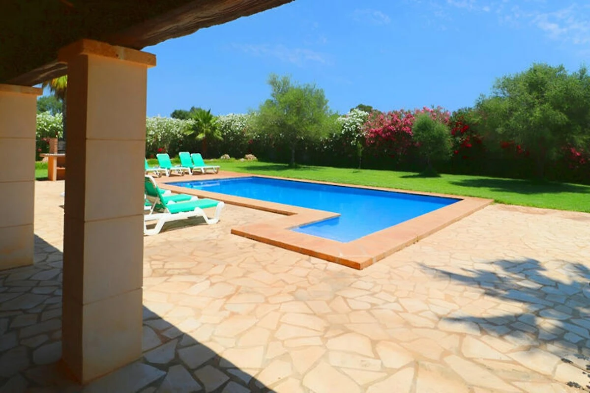 In het serene landschap van Zuid-Mallorca, tussen de charmante stadjes Campos en Santanyí, biedt dit prachtige landhuis een rustig toevluchtsoord voor maximaal acht gasten. Omgeven door weelderig groen en op korte rijafstand van enkele van de mooiste stranden van het eiland, waaronder Es Trenc, Ses Covetes, Sa Ràpita en Sa Colònia, is deze accommodatie perfect gelegen voor een ontspannen en onvergetelijke vakantie. Of u nu op zoek bent naar rustige dagen bij het zwembad of avonturen langs de ongerepte kustlijn van Mallorca, dit huis biedt de ideale uitvalsbasis. Binnen beschikt het huis over 250 m² smaakvol ingerichte woonruimte. Vier ruime slaapkamers, twee met een tweepersoonsbed en twee met twee eenpersoonsbedden, zorgen voor een comfortabele accommodatie voor iedereen. Drie badkamers, waarvan één met een douche en twee met een bad, bieden comfort en privacy. De gezellige woon- en eetkamer, uitgerust met satelliet-tv en wifi, nodigt u uit om te ontspannen na een dag vol ontdekkingen. Een volledig uitgeruste keuken maakt het bereiden van maaltijden een plezier, terwijl centrale verwarming zorgt voor comfort tijdens de koudere maanden. Stap naar buiten en ontdek een privé-oase. Het grote zwembad van 10x5m is perfect om af te koelen onder de Mallorcaanse zon, terwijl de omliggende ligstoelen u uitnodigen om te ontspannen en te genieten van de rustige sfeer. Het overdekte terras, compleet met een eettafel voor acht personen, biedt een pittoreske setting voor maaltijden in de buitenlucht met uitzicht op het zwembad en de prachtig onderhouden tuin. Een buitenbarbecue draagt bij aan de charme, waardoor u gemakkelijk kunt genieten van lange avonden onder de sterrenhemel. Dankzij de nabijheid van Campos en Santanyí heeft u toegang tot diverse voorzieningen, waaronder restaurants, supermarkten en lokale markten. Verken de traditionele straten van Campos, proef de authentieke Mallorcaanse keuken of ga naar de nabijgelegen stranden voor onvergetelijke dagen aan zee. Of u nu met familie of vrienden reist, dit landhuis combineert comfort, schoonheid en gemak voor een uitzonderlijke vakantie-ervaring.