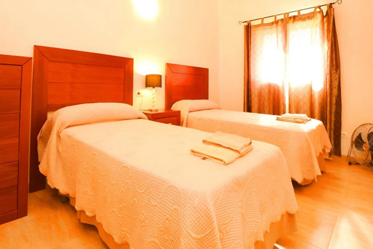 De boerderij beslaat 170 vierkante meter en biedt plaats aan maximaal acht gasten, waardoor er voldoende ruimte is voor iedereen. De open woon- en eetkamer is zorgvuldig ontworpen met comfortabele banken, satelliet-tv, een dvd-speler, wifi en airconditioning voor comfort het hele jaar door. De volledig uitgeruste moderne keuken is perfect voor het bereiden van maaltijden om te nuttigen aan de grote eettafel of buiten bij de barbecue. Met vier slaapkamers met twee eenpersoonsbedden en twee badkamers is de indeling ideaal voor gezinnen of groepen vrienden. Het omheinde zwembad, compleet met kindveilige voorzieningen, zorgt voor extra gemoedsrust voor ouders.