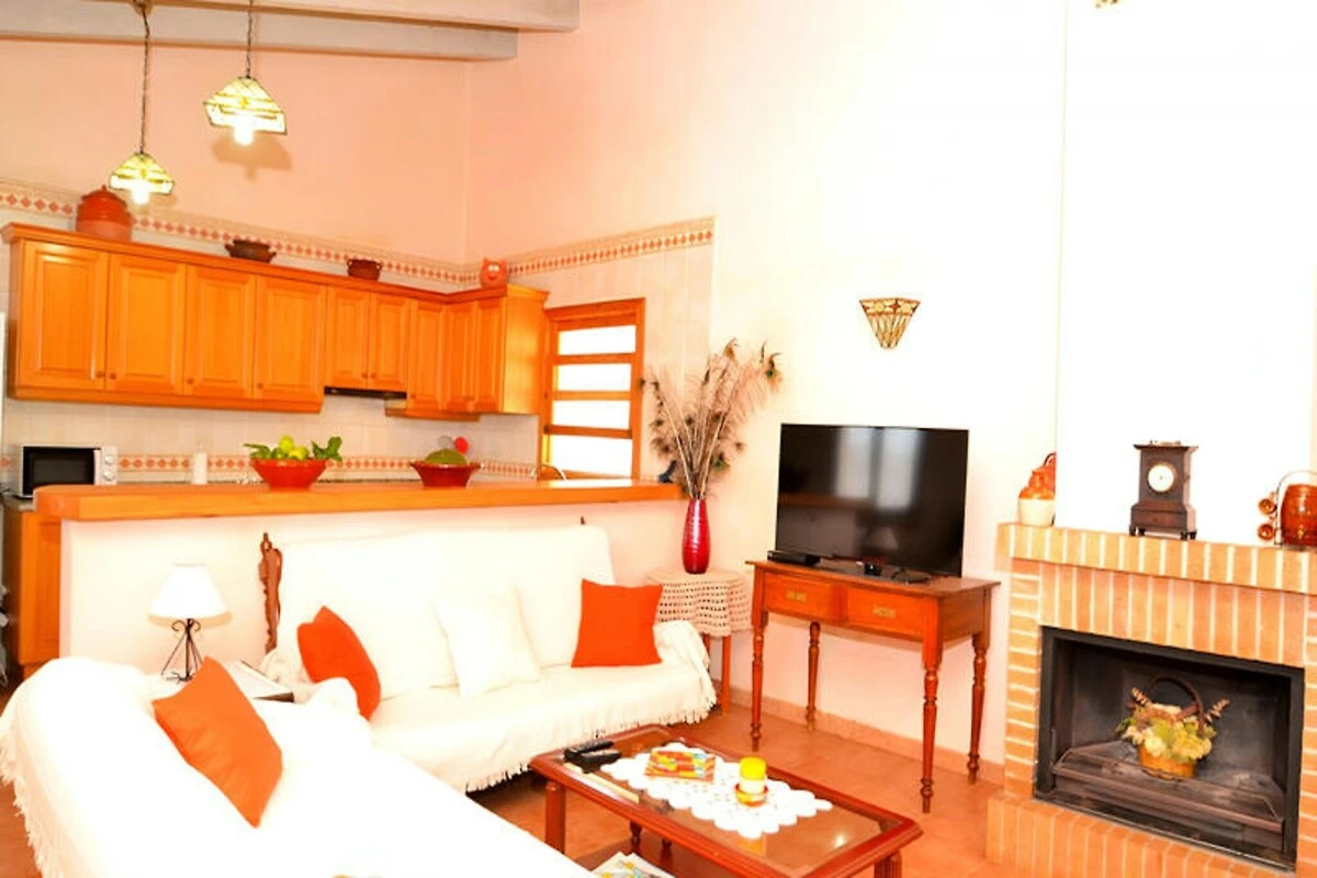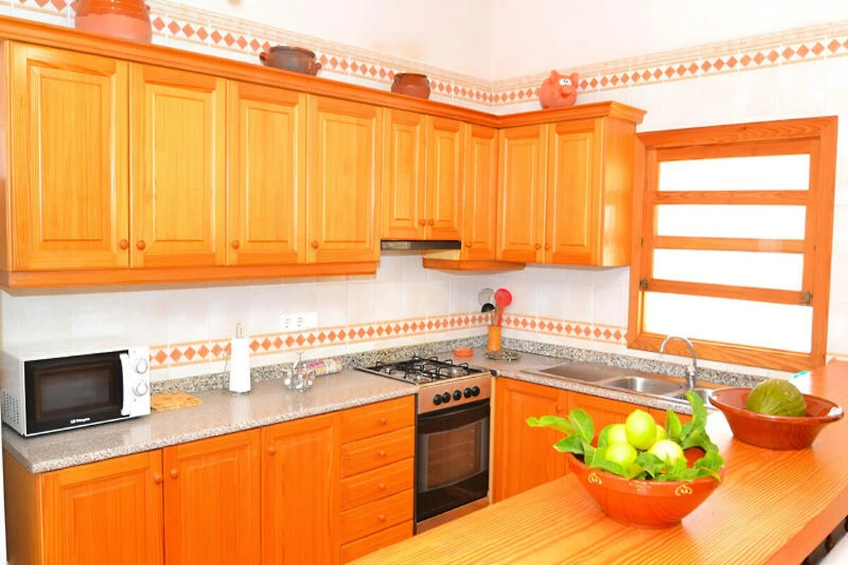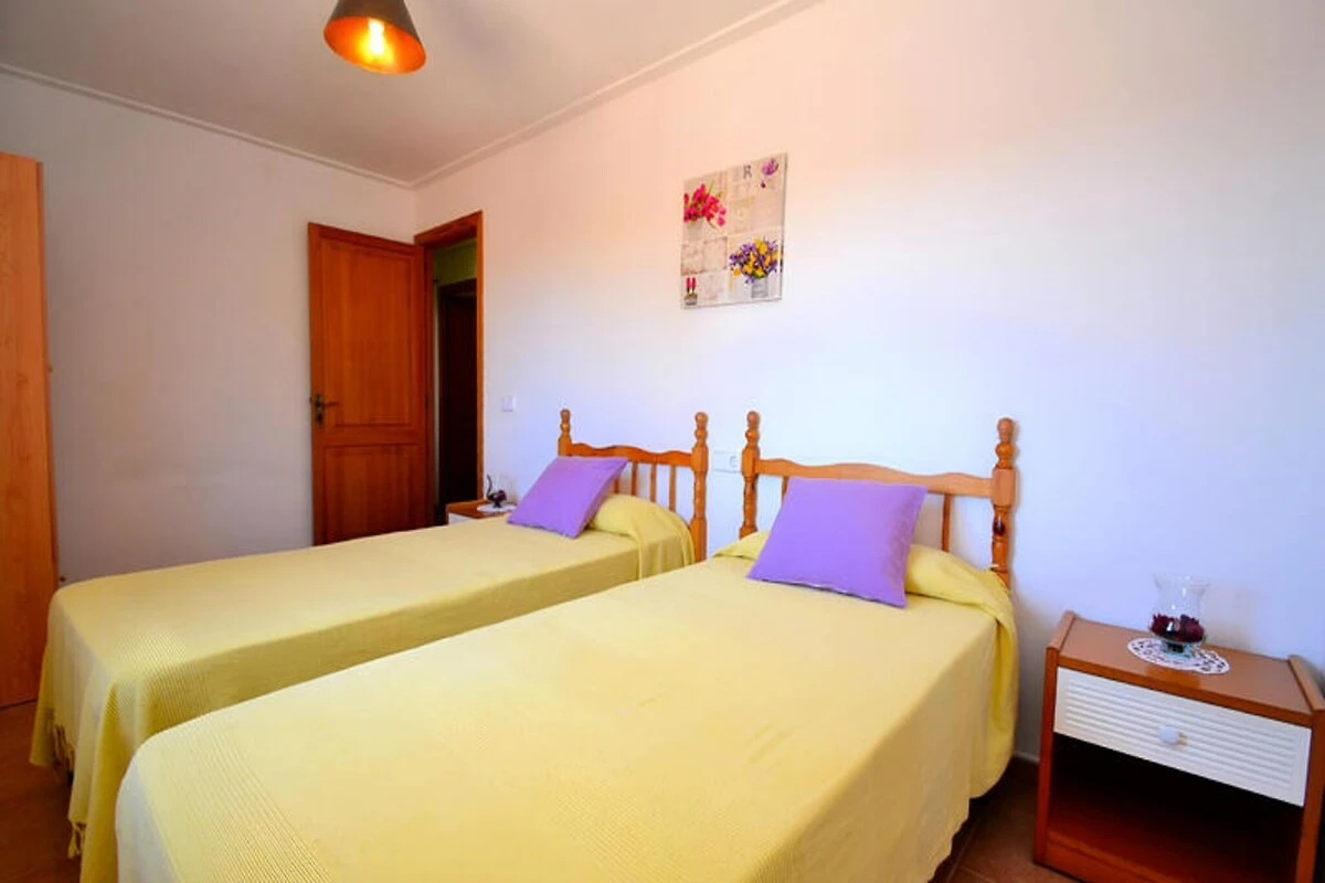 Het huis beslaat 96 vierkante meter en biedt comfortabel plaats aan maximaal vier gasten. Met twee prachtig ingerichte slaapkamers – één met een tweepersoonsbed en de andere met twee eenpersoonsbedden – garandeert het een rustgevende nachtrust voor iedereen. De open keuken is volledig uitgerust met moderne apparatuur, terwijl de gezellige woonkamer uitnodigt tot ontspanning met satelliet-tv en wifi. Buiten is het overdekte terras ideaal om buiten te eten, compleet met een barbecue en een tafeltennistafel voor extra plezier. Het privézwembad, omgeven door ligstoelen, biedt een verfrissende oase onder de Mallorcaanse hemel. Volledig omheind en met voldoende parkeergelegenheid garandeert de accommodatie privacy en gemak.