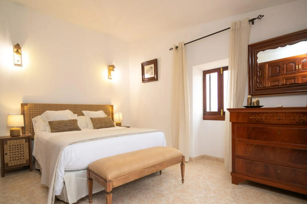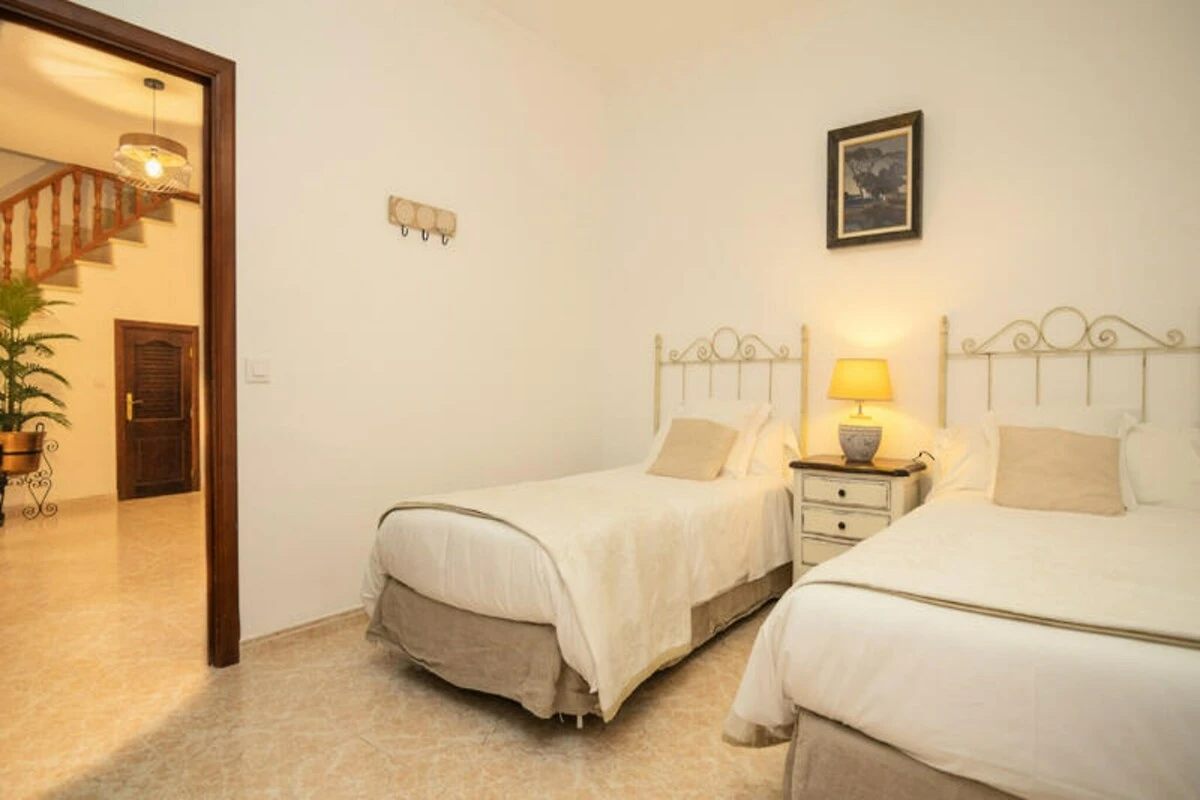 Betreed het huis via een indrukwekkende hal, typisch voor de Mallorcaanse architectuur, en ontdek een huis dat is ontworpen voor comfort en verbondenheid. Op de begane grond vindt u een gezellige woonkamer met een hoekbank en satelliet-tv, die leidt naar een rustieke, volledig uitgeruste keuken met een grote eettafel. Een aparte eetkamer biedt extra ruimte voor gezamenlijke maaltijden, terwijl de charmante binnenplaats het hart vormt van uw bijeenkomsten in de buitenlucht. Hier vindt u een barbecue, een eethoek en een zwembad van 10 vierkante meter met ligstoelen, perfect om te genieten van de mediterrane zon. Voor gezinnen met jonge kinderen kan het zwembadgedeelte veilig worden afgesloten, zodat u zich geen zorgen hoeft te maken.