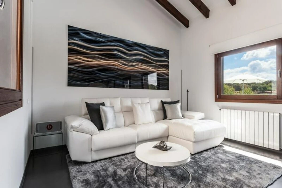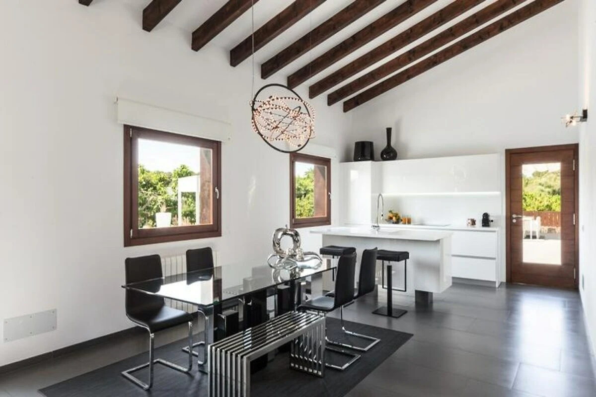 Te midden van het serene platteland van Mallorca biedt deze elegante villa, Son Calet, een rustig toevluchtsoord tussen de charmante dorpjes Muro en Llubá. Hier ontvouwt de schoonheid van het mediterrane leven zich met weelderige landschappen, gouden zonlicht en de belofte van ontspanning. Of u nu op zoek bent naar een rustige ontsnapping of een avontuurlijke vakantie, deze villa nodigt u uit om het beste van twee werelden te ervaren. De locatie biedt gemakkelijke toegang tot de authentieke charme van Muro, op slechts 5 minuten rijden, en de ongerepte stranden van Mallorca, op slechts 12 km van uw voordeur. De villa beslaat 180 m² en is ontworpen met moderne verfijning en onberispelijke smaak. De villa biedt plaats aan maximaal zes gasten en beschikt over drie prachtig ingerichte slaapkamers – twee met een tweepersoonsbed en één met twee eenpersoonsbedden – en twee stijlvolle badkamers met douche. De ruime woon- en eetkamer baadt in natuurlijk licht, wat een warme en uitnodigende sfeer creëert. De open keuken sluit naadloos aan op de eetruimte, waardoor het ideaal is voor gezamenlijke maaltijden en momenten met uw dierbaren. Elk detail van het interieur weerspiegelt hoogwaardig vakmanschap en doordacht design, wat zorgt voor een comfortabel en luxueus verblijf. \n\nStap naar buiten en ontdek een terras van 270 m² dat de essentie van het mediterrane buitenleven belichaamt. Ontspan op modern tuinmeubilair, geniet van maaltijden in de barbecue of koel af in het grote zwembad met waterval, omringd door weelderig groen. Deze buitenoase is perfect om te genieten van de zon, te genieten van ontspannen avonden of gewoon te ontspannen in de rustige omgeving. \n\nMet de nabijheid van de geplaveide straatjes van Muro, lokale markten en prachtige Mallorcaanse architectuur, evenals de nabijgelegen stranden, is Son Calet een toegangspoort tot de authentieke charme van Mallorca. Of u nu de culturele schatten van het eiland verkent of geniet van de natuurlijke schoonheid, deze villa is de perfecte uitvalsbasis voor het creëren van onvergetelijke herinneringen.