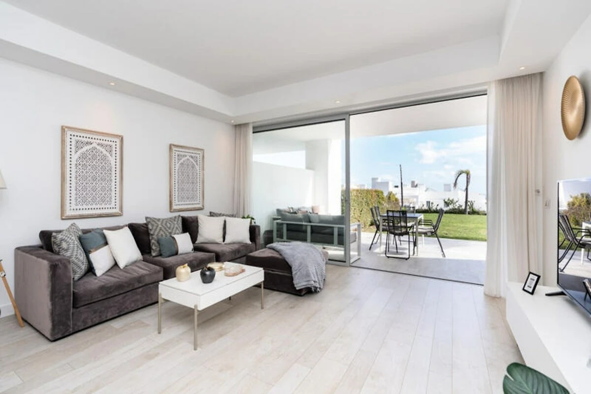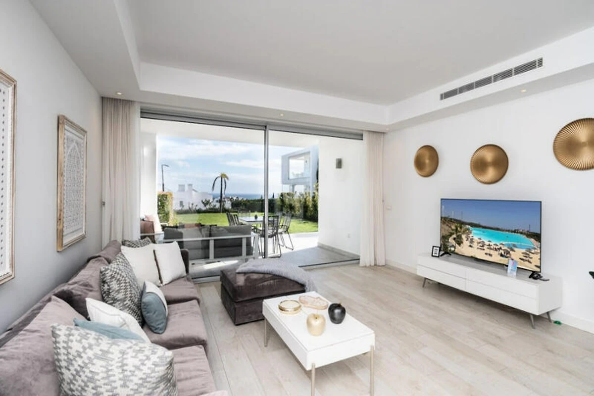 In de zonovergoten heuvels van Casares, waar de mediterrane bries een vleugje rust met zich meedraagt, ligt een oase van moderne luxe bij de Alcazaba-lagune. Dit uitzonderlijke wooncomplex nodigt u uit om Europa's eerste kristalheldere lagune te ervaren, een glinsterende oase omringd door weelderige tropische tuinen en ongerepte witgekalkte architectuur. Of u nu op zoek bent naar rust of avontuur, deze unieke bestemming belooft een onvergetelijke ontsnapping. Stelt u zich eens voor: u wordt wakker met het zachte geritsel van palmbomen en stapt op uw privéterras om te genieten van de schoonheid van de Costa del Sol. Dit moderne appartement is zorgvuldig ontworpen voor comfort en gemak, met twee ruime slaapkamers, een volledig uitgeruste keuken en een privétuin, perfect om buiten te dineren. Snelle wifi, airconditioning en een smart-tv zorgen voor een naadloze mix van moderne voorzieningen en de charme van het mediterrane leven. Gasten hebben exclusieve toegang tot het zandstrand, de gemeenschappelijke zwembaden en de fitnessruimte van de lagune, waardoor elk moment van uw verblijf moeiteloos aangenaam wordt. Op slechts een steenworp afstand serveert het restaurant Alcazaba Lagoon heerlijke mediterrane gerechten, terwijl de nabijgelegen Estepona Golf en de zandstranden van Estepona eindeloze mogelijkheden bieden voor ontspanning. Verken het bruisende stadscentrum, geniet van een diner aan het strand of waag u in het natuurpark Sierra Crestellina voor wandeltochten en panoramische uitzichten. Golfliefhebbers zullen genieten van de nabijheid van golfbanen van wereldklasse zoals Valderrama en Los Flamingos. Of u nu ontspant aan de lagune, geniet van lokale delicatessen of de schatten van Andalusië verkent, deze accommodatie biedt de perfecte mix van ontspanning en avontuur. Laat de gouden zon van de Costa del Sol en de ongeëvenaarde voorzieningen van de Alcazaba Lagoon herinneringen creëren die een leven lang meegaan.