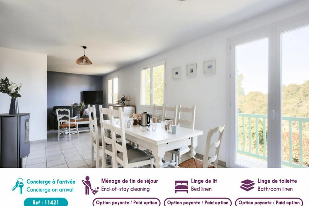 Stap binnen en word begroet door een rustgevende ambiance, met lichte tinten en een doordachte inrichting die een gastvrije sfeer creëren. Het huis beschikt over vier comfortabele slaapkamers, drie met een tweepersoonsbed en één speciaal voor kinderen met een stapelbed, plus een tweepersoonsslaapbank in de woonkamer voor extra gasten. De goed uitgeruste keuken, met een gasfornuis, koelkast, magnetron, vriezer, vaatwasser en meer, is perfect voor het bereiden van heerlijke maaltijden om te delen. Entertainment is nooit ver weg, met een pingpongtafel en tafelvoetbaltafel die urenlang plezier bieden voor alle leeftijden.