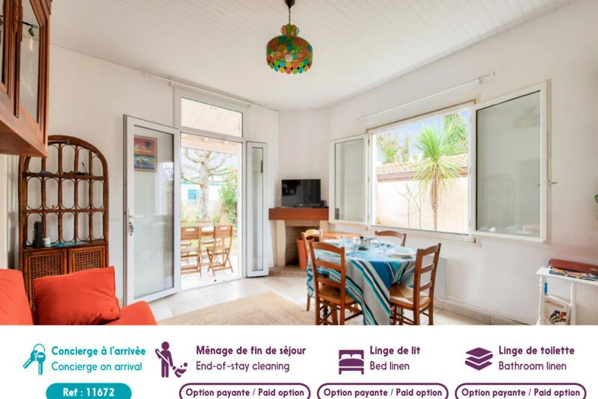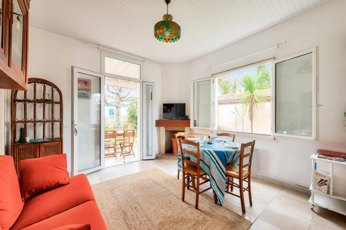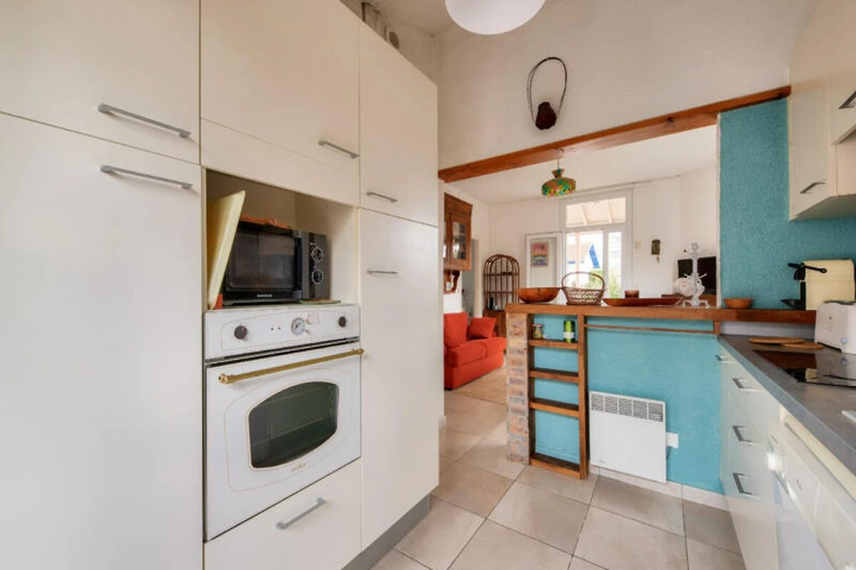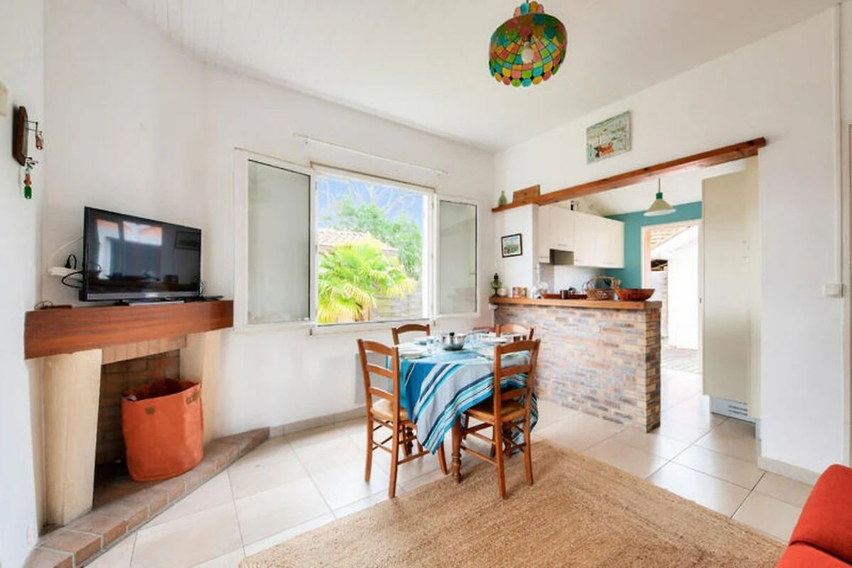 In het pittoreske stadje Andernos-les-Bains, waar de baai van Arcachon en weelderige landschappen samenkomen, biedt dit charmante vakantiehuis een serene oase voor zowel gezinnen als vrienden. Stelt u zich eens voor hoe u 's ochtends geniet van een ontbijt op het zonovergoten terras, terwijl de kinderen vrij spelen in de privétuin. De middagen kunnen worden gevuld met ontspannen wandelingen naar nabijgelegen zandstranden of genieten van verse visgerechten in lokale restaurants. Deze accommodatie combineert comfort en gemak en is daarmee een ideale uitvalsbasis om de natuurlijke schoonheid en culinaire hoogstandjes van de regio te verkennen. Stap binnen en ontdek een gezellige woonkamer met een volledig uitgeruste keuken met moderne apparatuur zoals een inductiekookplaat, koelkast, magnetron, oven en vaatwasser. Verzamel rond de ronde eettafel voor maaltijden vol gelach en gezelligheid, of ontspan in de gezellige woonkamer met een houtkachel en televisie. Het huis biedt plaats aan maximaal zes gasten met twee gezellige slaapkamers – één met een tweepersoonsbed en toegang tot de tuin, de andere met twee eenpersoonsbedden – en een aparte kamer met een slaapbank voor extra flexibiliteit. Een doucheruimte, apart toilet en voorzieningen zoals een wasmachine, haardroger en parkeergelegenheid voor twee auto's zorgen voor een zorgeloos verblijf. \n\nGelegen op slechts 300 meter van het zandstrand \