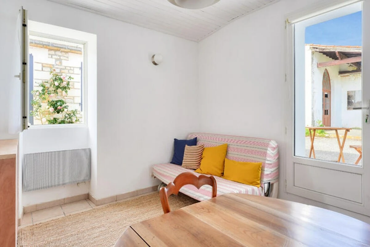 Stel je voor dat je wakker wordt met het rustgevende geluid van de golven en de frisse geur van zeelucht in La Tranche-sur-Mer, een charmant toevluchtsoord aan de kust dat bekendstaat om zijn rust en gezinsvriendelijke sfeer. Deze heerlijke vakantiewoning nodigt je uit om te ontspannen en weer in contact te komen met de natuur. Het biedt gemakkelijke toegang tot zandstranden, schilderachtige fietspaden en weelderige bossen. Of je nu wilt ontspannen of de omgeving wilt verkennen, deze bestemming belooft onvergetelijke momenten aan zee. Stap binnen in dit gezellige huisje en ontdek een zorgvuldig ontworpen ruimte die comfort en functionaliteit combineert. Het kleine terras bij de ingang is perfect om te genieten van je ochtendkoffie of een glas wijn 's avonds. Binnen is de keuken volledig uitgerust met moderne apparatuur, waaronder een keramische kookplaat, koelkast, magnetron, oven, vriezer, koffiezetapparaat, broodrooster, waterkoker en sapcentrifuge, zodat je alles hebt wat je nodig hebt om heerlijke maaltijden te bereiden. De lichte eethoek en de uitnodigende lounge bieden een gastvrije plek om te ontspannen, te lezen of 24 uur per dag een film te kijken.
