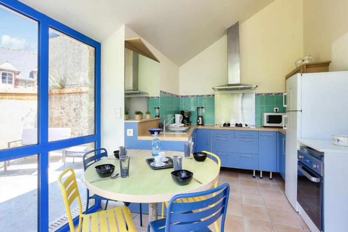 Stap door de blauwe deur van dit charmante Bretonse huis en laat u omringen door de sfeer van de kust. Gelegen in een rustige omgeving, op slechts enkele minuten van het bruisende centrum van Dinard en de prachtige stranden, biedt dit traditionele huis een perfect toevluchtsoord voor maximaal zes gasten. De inrichting, geïnspireerd op de oceaan, heeft rustgevende blauwe tinten en nautische accenten die een warme en uitnodigende sfeer creëren. Of u nu geniet van een kopje koffie in de ochtend in de tuin of ontspant in de gezellige woonkamer, elke hoek van dit huis voelt als een ode aan het leven aan de kust. Binnen is het huis zorgvuldig ontworpen voor comfort en gemak. De woonkamer, met zijn luxe fauteuils en bank, nodigt u uit om te ontspannen met een goed boek of een filmavond met het gezin. De eetkamer is ideaal om samen te eten, terwijl de goed uitgeruste keuken in de blauwe serre koken tot een plezier maakt. Van het gasfornuis tot de vaatwasser, alle voorzieningen zijn binnen handbereik. Op de begane grond vindt u een turquoise eenpersoonskamer en een badkamer met douche, terwijl u boven nog drie slaapkamers vindt, waaronder een queensize hoofdslaapkamer en twee kamers met flexibele slaapplaatsen. Moderne gemakken zoals een wasmachine, droger en wifi zorgen voor een stressvrij verblijf. De locatie is onovertroffen. Op slechts 2 km afstand vindt u in het centrum van Dinard markten, winkels en restaurants, terwijl de stranden van Le Prieuré en L'Écluse perfect zijn om te zonnen of te zwemmen. Verken de wandelroute GR34 voor adembenemende uitzichten over de kust of wandel langs de Promenade du Clair de Lune. Golfliefhebbers kunnen een balletje slaan op Dinard Golf en gezinnen zullen genieten van het nabijgelegen Grand Aquarium van St. Malo. Met gemakkelijke toegang tot supermarkten, openbaar vervoer en lokale bezienswaardigheden is alles wat u nodig heeft binnen handbereik. Of u nu op zoek bent naar ontspanning of avontuur, dit charmante Bretonse huis is uw toegangspoort tot de schoonheid en charme van Dinard. Boek uw verblijf en creëer onvergetelijke herinneringen aan zee.