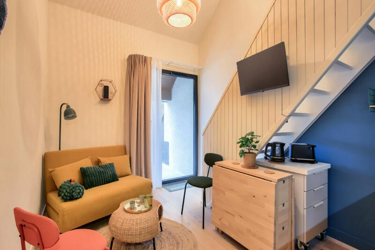 In het hart van de betoverende badplaats Dinard biedt deze moderne studio een serene oase op slechts een steenworp afstand van het strand. Stel je voor dat je wakker wordt met het geluid van de golven en je dag begint met een ontspannen ontbijt op het privéterras. Of je nu op zoek bent naar een romantisch uitje of een rustig toevluchtsoord, deze knusse studio is de perfecte uitvalsbasis om de charme en schoonheid van de Smaragdkust van Bretagne te ontdekken. Dankzij de uitnodigende sfeer en het doordachte ontwerp voel je je vanaf het moment van aankomst meteen thuis.