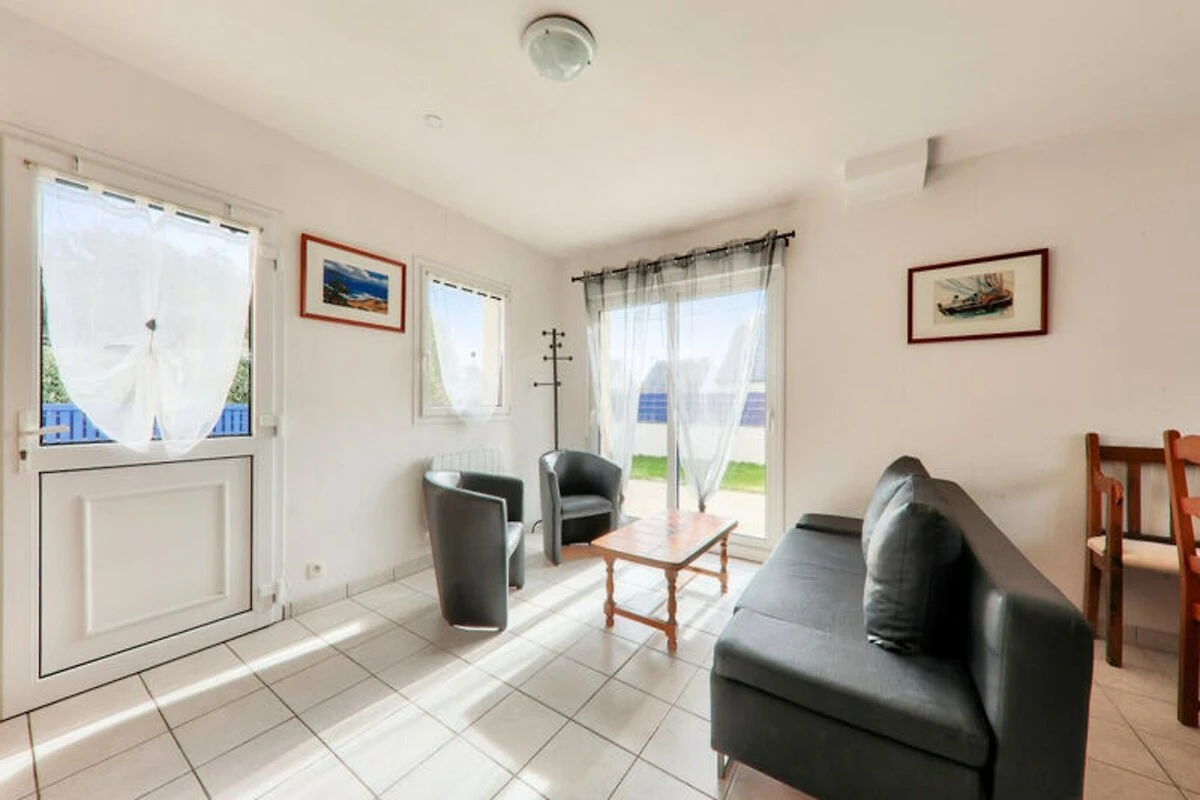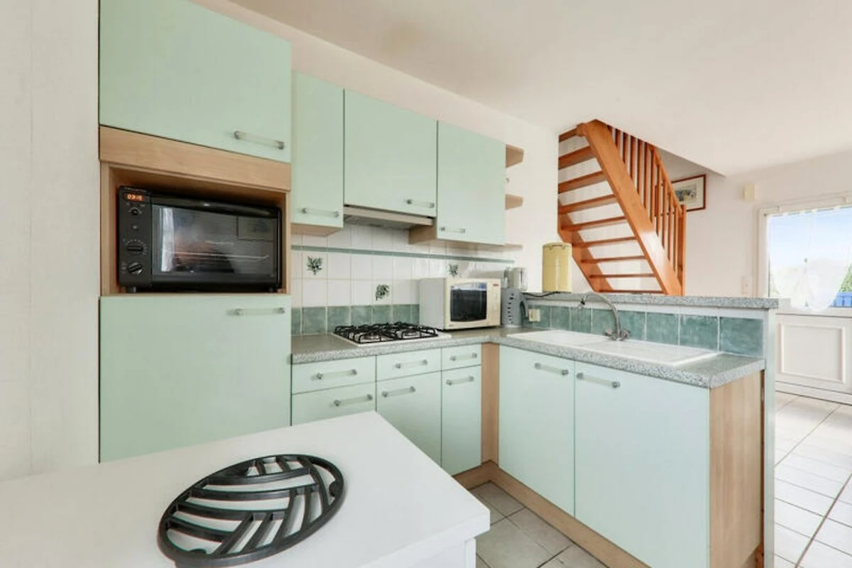 In het hart van Zuid-Bretagne, waar de zee de lucht ontmoet, biedt dit lichte en uitnodigende vakantiehuis een serene ontsnapping op slechts 500 meter van het gouden zand van het strand van Penvins. Word wakker met het geluid van de golven, adem de frisse kustlucht in en geniet van de charme van Sarzeau, een badplaats vol culturele schatten, buitenavonturen en rustige momenten aan de kust. Of u nu langs de kustlijn naar de landtong van Penvins wandelt of de levendige lokale markten verkent, deze bestemming belooft onvergetelijke herinneringen. \n\nHet huis is ontworpen voor maximaal zes gasten en is een oase van comfort en functionaliteit. De begane grond beschikt over een gezellige woonkamer met een gezellige lounge, een eetgedeelte en een volledig uitgeruste keuken met moderne apparatuur, waaronder een gasfornuis, oven, magnetron en vaatwasser. Een slaapkamer met tweepersoonsbed, een badkamer met douche en een apart toilet bevinden zich ook handig op deze verdieping. Boven bieden twee ruime slaapkamers met queensize bedden, een tweede badkamer met douche en een extra toilet voldoende ruimte voor rust en ontspanning. Een wasmachine, een eigen fietsenstalling en twee parkeerplaatsen dragen bij aan uw gemak tijdens uw verblijf. \n\nStap buiten de deur in een omheinde tuin, ideaal voor kinderen om veilig te spelen of om te genieten van een zomerse barbecue op de houtskoolgrill. Nabijgelegen attracties zijn onder andere het pretpark Celt'Aventures, het Domaine de Suscinio en de pittoreske stranden van Landrezac, allemaal op korte rijafstand. Voor golfliefhebbers is er de Bluegreen Rhuys Kerver Golf Course, op slechts 16 km afstand. \n\nOf u nu geniet van verse oesters op de lokale markten, ronddwaalt in het historische Château de Suscinio of gewoon ontspant aan zee, deze accommodatie is uw toegangspoort tot het beste van Zuid-Bretagne. Laat de schoonheid van Sarzeau en omgeving uw hart veroveren en creëer dierbare vakantieherinneringen.