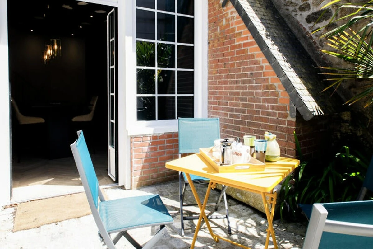 Op een steenworp afstand van het goudgele zand van het strand van L'Écluse en het bruisende hart van Dinard, nodigt dit elegante herenhuis u uit om de charme van het leven aan zee in Bretagne te ervaren. Met zijn tijdloze uitstraling en moderne comfort is het de perfecte plek voor gezinnen of stellen die op zoek zijn naar een mix van ontspanning en ontdekking. Stelt u zich eens voor: wakker worden met het geluid van de golven en genieten van een ontspannen ontbijt op het privéterras, omringd door de serene ambiance van deze kustplaats. De charme van Dinard uit de Belle Époque en het prachtige uitzicht op Saint-Malo vormen het decor voor onvergetelijke momenten. Stap binnen in dit prachtig gerenoveerde huis van 80 m² en ontdek een warme en uitnodigende sfeer. De woonkamer beschikt over een gezellige lounge met een decoratieve open haard, luxe zitgelegenheid en een uitnodigende ruimte om te ontspannen na een dag vol avonturen. De open keuken is volledig uitgerust met alles wat u nodig heeft om heerlijke maaltijden te bereiden, van inductiekookplaten tot koffiezetapparaten. Een centraal kookeiland biedt een perfecte plek voor een informeel diner of om verhalen te delen onder het genot van een glas wijn. Boven zorgen twee zorgvuldig ontworpen slaapkamers voor een rustgevende nachtrust, met flexibele slaapmogelijkheden die aan uw wensen voldoen. Moderne badkamers op elke verdieping zorgen voor comfort, terwijl voorzieningen zoals een wasmachine en een veilige fietsenstalling bijdragen aan uw gemak. Gelegen op slechts 300 meter van het strand en op een steenworp afstand van lokale restaurants, winkels en markten, bevindt deze accommodatie zich in het hart van de levendige maar toch rustige sfeer van Dinard. Verken de Promenade du Clair de Lune, geniet van watersporten of ga verder op ontdekkingstocht naar Saint-Malo, Mont-Saint-Michel en de Smaragdkust. Of u nu komt voor culturele evenementen, mooie wandelingen of gewoon om te ontspannen, dit huis biedt een perfecte uitvalsbasis om blijvende herinneringen te creëren. Kies voor deze woning vanwege de onovertroffen locatie, het moderne comfort en de belofte van een typisch Bretonse vakantie. Met conciërgediensten beschikbaar gedurende uw verblijf, is elk detail verzorgd, zodat u onbezorgd kunt genieten van de schoonheid en charme van Dinard.