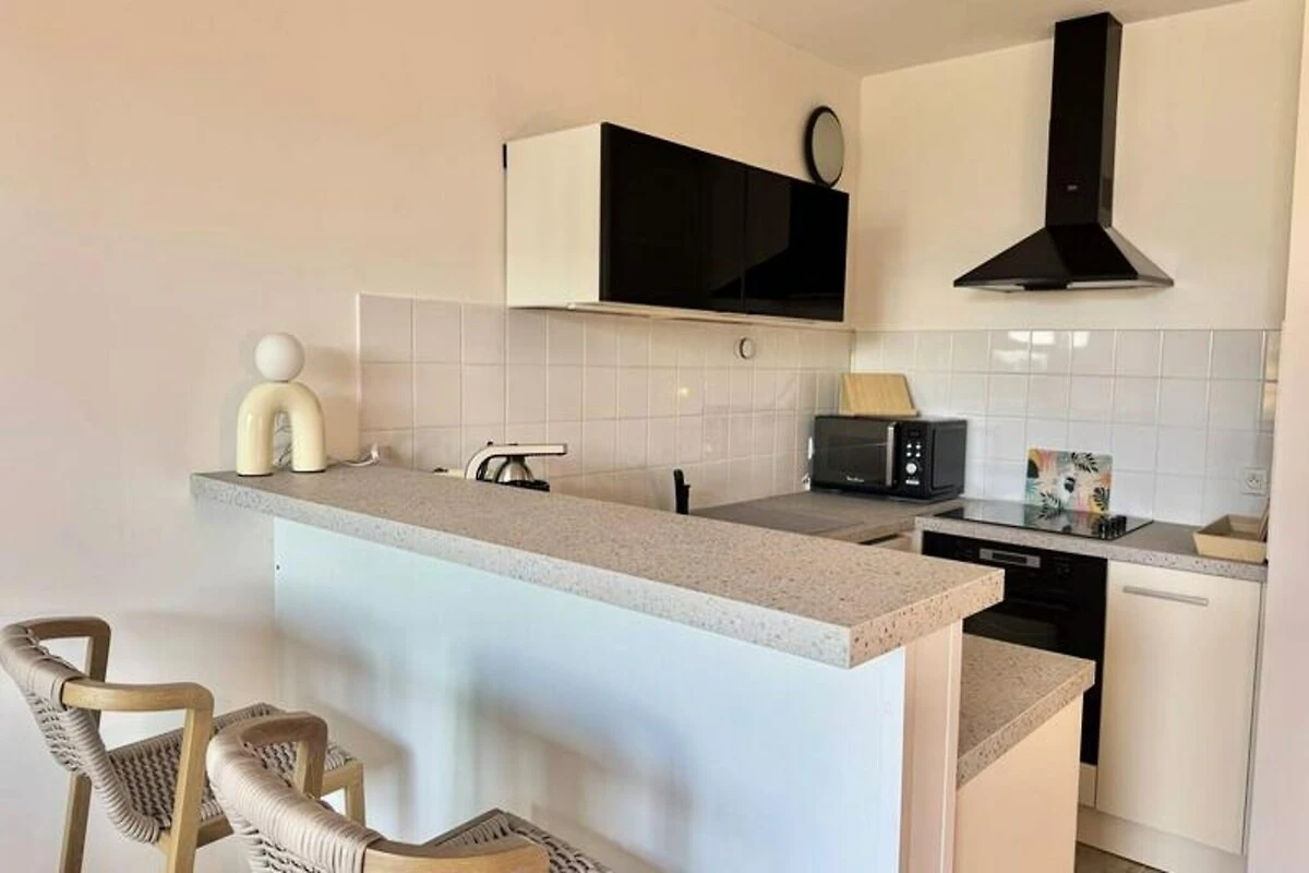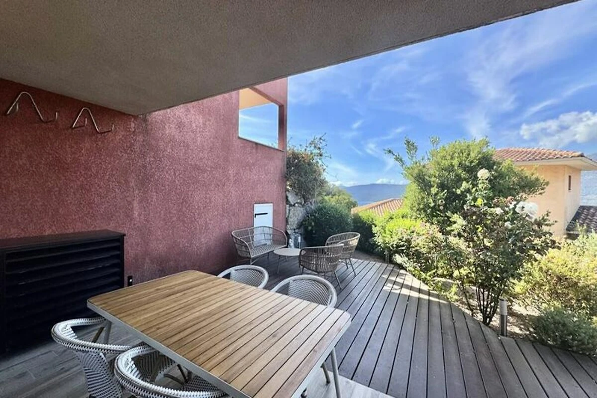 Hoog boven de schitterende kustlijn van Propriano biedt dit stijlvolle appartement een serene oase op slechts enkele minuten van zandstranden en bruisende lokale winkels. De zachte mediterrane bries en de glimp van de zee vanaf uw privéterras zetten de toon voor een ontspannen vakantie in het hart van de charme van Corsica. Of u nu op zoek bent naar rust of avontuur, deze moderne oase is perfect gelegen om beide te bieden. \n\nStap binnen en ontdek een zorgvuldig ontworpen ruimte waar comfort en elegantie samenkomen. De open keuken, volledig uitgerust met moderne apparatuur, loopt naadloos over in een gezellige woonkamer met een slaapbank en een eetgedeelte. De slaapkamer, versierd met een comfortabel tweepersoonsbed van 160 cm, belooft rustgevende nachten, terwijl de strakke badkamer een vleugje luxe toevoegt aan uw verblijf. Buiten nodigt het gemeubileerde terras u uit om te genieten van maaltijden in de buitenlucht, bereid op de bakplaat of in de zomerkeuken, terwijl u geniet van de zachte tinten van de mediterrane zonsondergang. \n\nGemak staat voorop, met voorzieningen zoals airconditioning, glasvezel-wifi en een televisie met Netflix en de belangrijkste zenders voor een naadloze ervaring. Een eigen parkeerplaats draagt bij aan uw comfort, terwijl het verstrekte linnengoed en de schoonmaakservice na vertrek voor ultiem comfort zorgen. \n\nDit appartement ligt op korte rijafstand van de bruisende jachthaven van Propriano, schilderachtige wandelpaden en culturele bezienswaardigheden en is uw toegangspoort tot het ontdekken van de natuurlijke schoonheid en het rijke erfgoed van Corsica. Of u nu de ruige kliffen van het eiland verkent of geniet van de culinaire hoogstandjes, deze accommodatie biedt de perfecte uitvalsbasis voor onvergetelijke herinneringen.