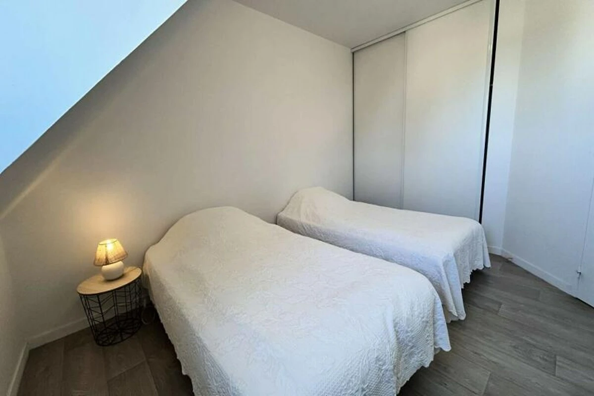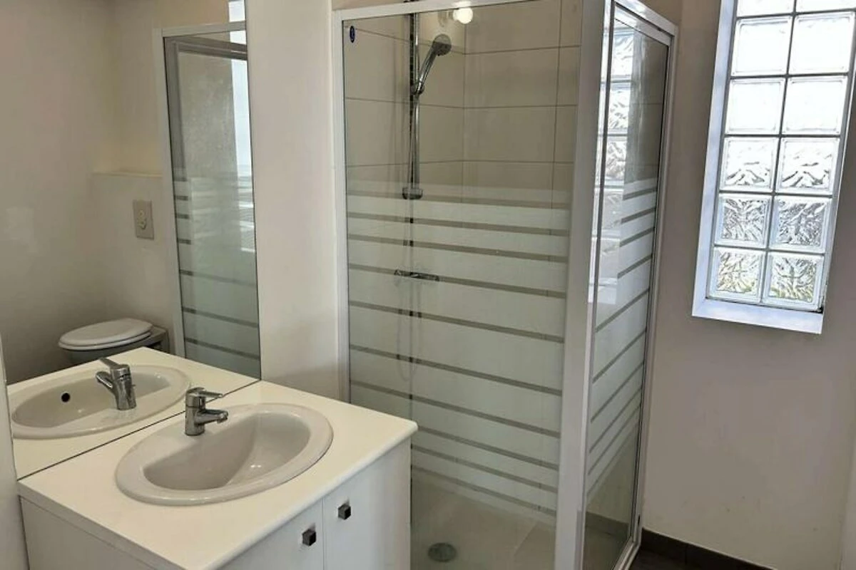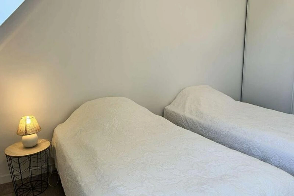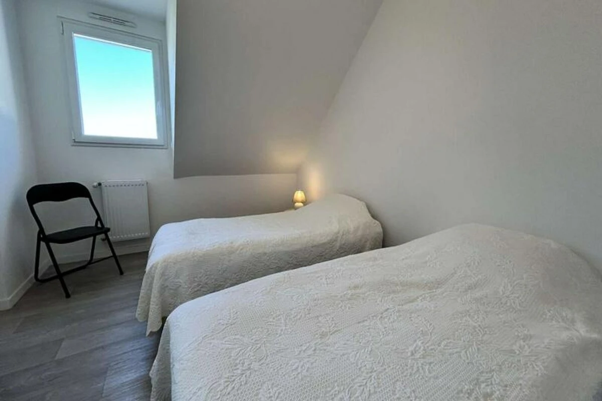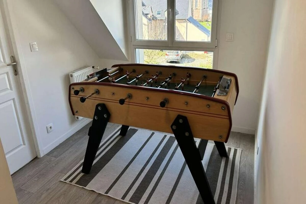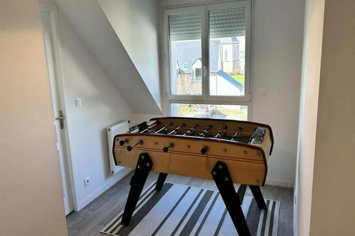 Het huis is ontworpen voor maximaal negen gasten en is licht en gastvrij, met een privéterras dat uitnodigt tot ontspannen onder de Bretonse zon. Op de begane grond vindt u een grote woonkamer met een gezellige zithoek en een eetgedeelte voor negen personen, naast een volledig uitgeruste keuken met alles wat u nodig heeft om heerlijke maaltijden te bereiden. Een comfortabele slaapkamer, een wasruimte en een badkamer completeren de begane grond. Boven vindt u drie zorgvuldig ingerichte slaapkamers, waaronder één met een stapelbed, ideaal voor gezinnen of groepen. De bovenverdieping beschikt ook over een ruime badkamer met een bad en douche, evenals een apart toilet.