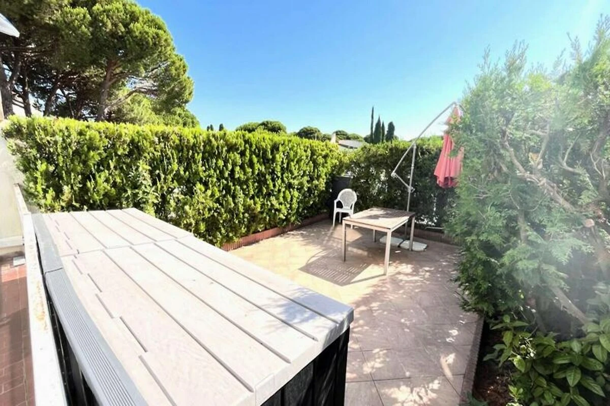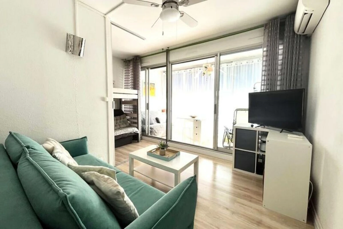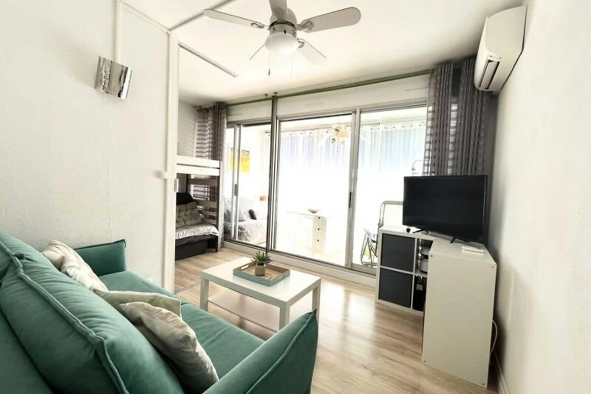 Het appartement is zorgvuldig ontworpen en biedt plaats aan maximaal vijf gasten, met twee tweepersoonsbedden en een stapelbed. Met een woonoppervlak van 32 m² met airconditioning combineert het functionaliteit met comfort. De goed uitgeruste keuken en badkamer bevinden zich gunstig gelegen naast de hal, terwijl de woonkamer baadt in natuurlijk licht en uitkomt op een weelderige tuin, perfect om te zonnen of te genieten van een maaltijd in de buitenlucht. Gasten hebben ook toegang tot een gedeeld, bewaakt zwembad, ideaal voor een verfrissende duik na een dag vol ontdekkingen.