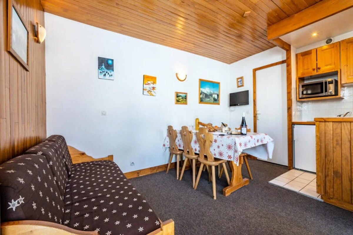 Het appartement van 35 m² is zorgvuldig ontworpen en biedt plaats aan maximaal zes gasten, waardoor het perfect is voor gezinnen of kleine groepen. De woonkamer is voorzien van een comfortabel uitschuifbed en een tv, terwijl de volledig uitgeruste keuken alles biedt wat u nodig heeft om stevige maaltijden te bereiden na een dag vol ontdekkingen: elektrische kookplaten, een oven, een koelkast en een vaatwasser. Een knusse slaapkamer met tweepersoonsbed en een hoekje met een stapelbed zorgen voor een rustgevende slaapgelegenheid, en de badkamer met een apart toilet zorgt voor gemak voor iedereen. Voor extra gemak is er een skiberging op de begane grond, waar u uw spullen veilig en klaar voor gebruik kunt opbergen.