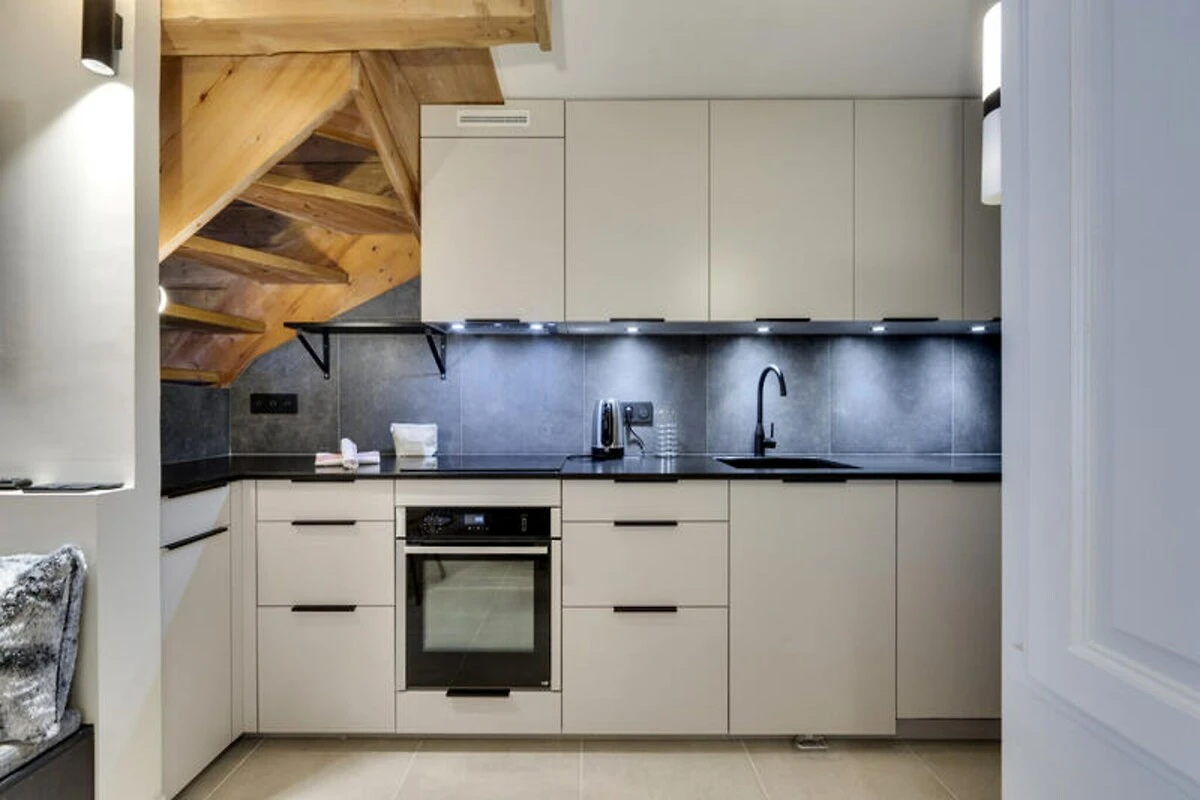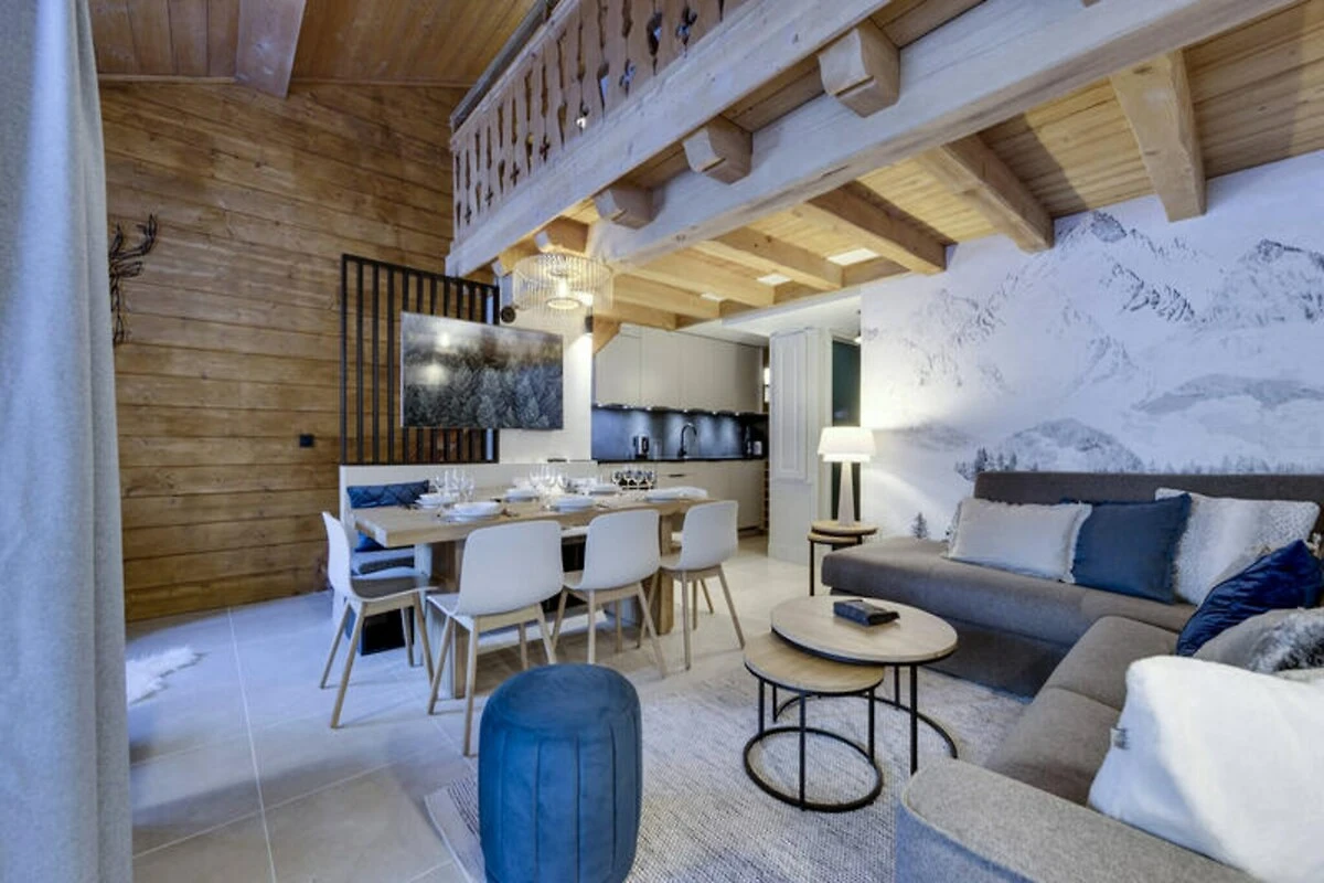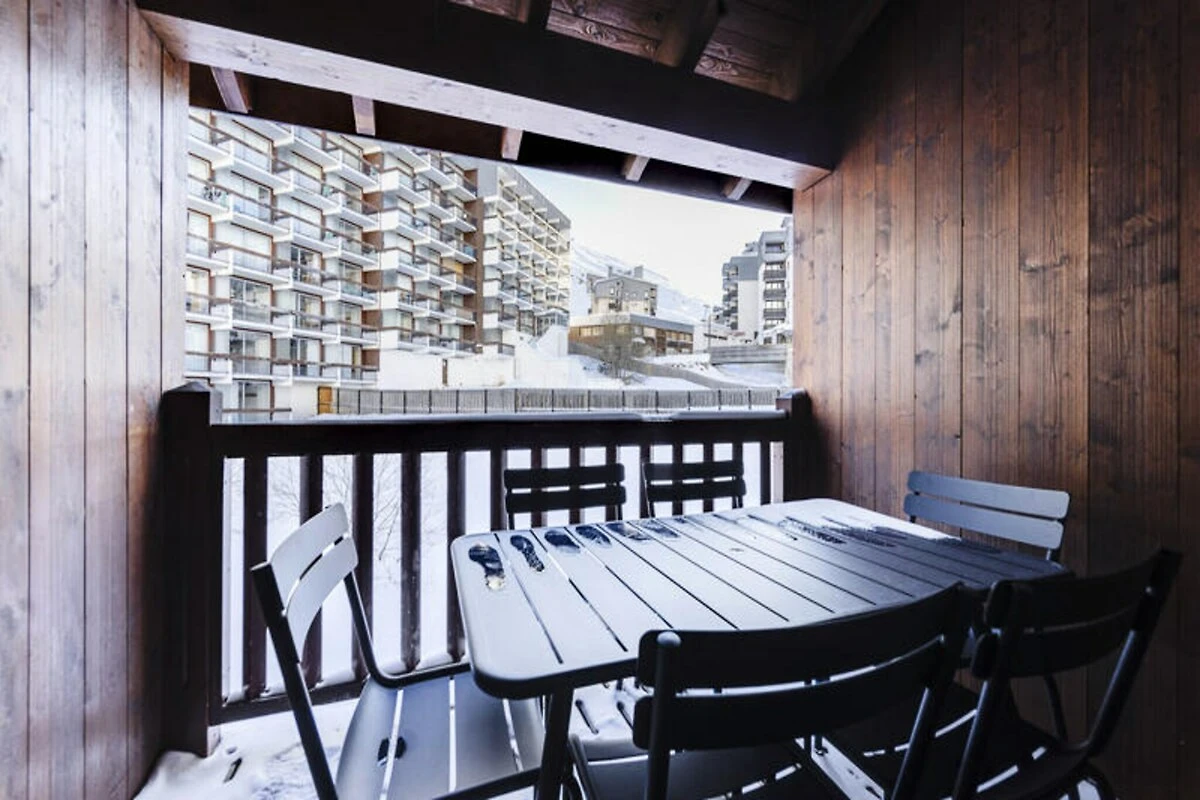 Hoog boven de glinsterende hellingen van Tignes Val Claret biedt dit prachtig gerenoveerde duplexappartement een serene alpenretraite met modern comfort en een adembenemend uitzicht op de bergen. Gelegen in de prestigieuze residentie Ecrin des Neiges, combineert het de charme van de traditionele Savoyaardse stijl met eigentijds design, wat een warme en uitnodigende sfeer creëert voor uw vakantie. Op slechts twee minuten van het bruisende centrum via de Platières-lift, biedt deze locatie zowel rust als gemak.