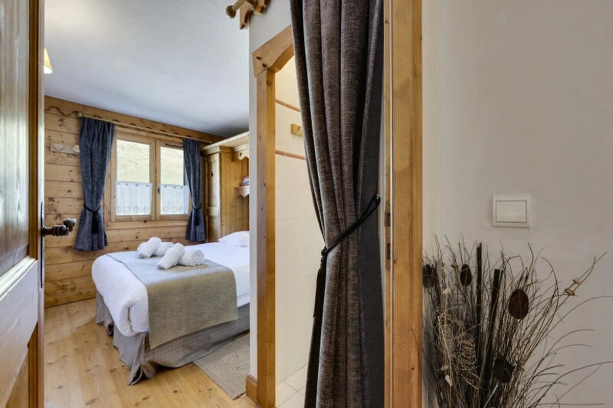 Deze ruime duplex met een oppervlakte van 80 m² is zorgvuldig ontworpen en biedt plaats aan maximaal zeven gasten. Op de benedenverdieping vindt u een open keuken en woonkamer met toegang tot een balkon, perfect om te genieten van uw ochtendkoffie met een panoramisch uitzicht. De indeling bestaat uit een tweepersoonsslaapkamer met een eigen badkamer met douche, een slaapkamer met twee eenpersoonsbedden die kan worden omgebouwd tot een tweepersoonsbed, en een aparte badkamer en toilet. Boven, op de mezzanine, staan drie comfortabele eenpersoonsbedden, waardoor het ideaal is voor gezinnen of groepen vrienden. Moderne voorzieningen zoals wifi, een flatscreen-tv en een overdekte privéparkeerplaats zorgen voor een comfortabel en stressvrij verblijf. Voor uw gemak is er ook een skikluisje beschikbaar.