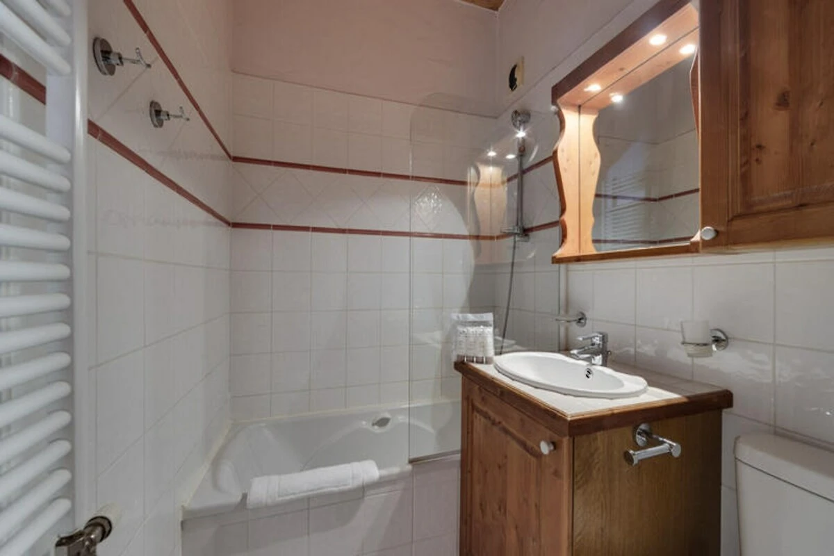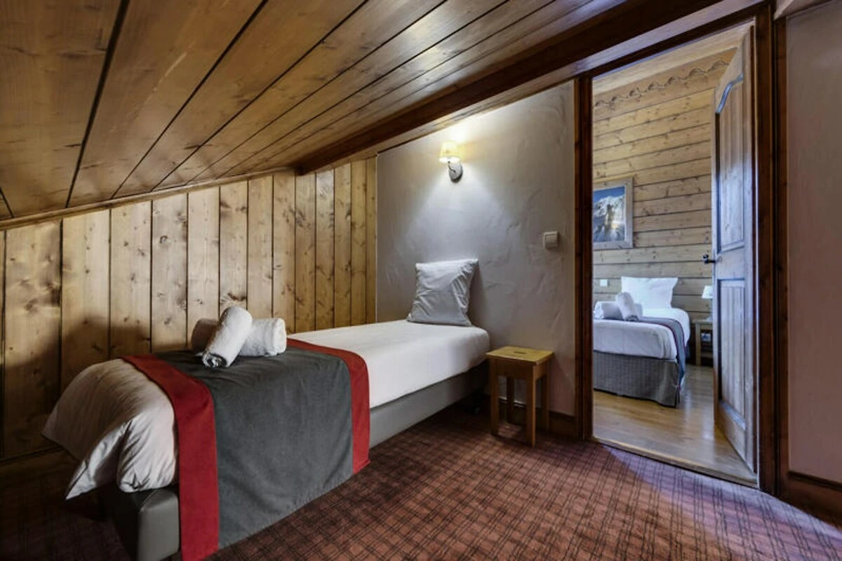Met een oppervlakte van 90 m² biedt deze prachtig ontworpen duplex gemakkelijk plaats aan maximaal negen gasten. De benedenverdieping beschikt over een open woonkamer met een volledig uitgeruste keuken, een gezellige lounge met tv en toegang tot een eigen balkon waar u kunt genieten van de frisse alpenlucht. Een ruime slaapkamer met tweepersoonsbed, een badkamer en een apart toilet completeren deze verdieping. Boven vindt u drie veelzijdige slaapkamers met twee eenpersoonsbedden die kunnen worden omgebouwd tot tweepersoonsbedden, een en-suite badkamer met douche en een charmante mezzanine met een eenpersoonsbed. Moderne voorzieningen zoals wifi, een overdekte privéparkeerplaats en een skiberging zorgen voor een comfortabel en zorgeloos verblijf.