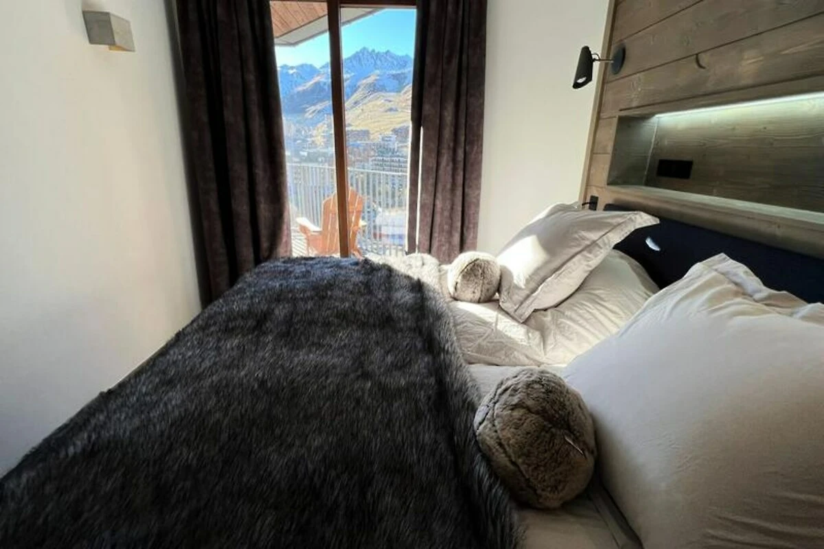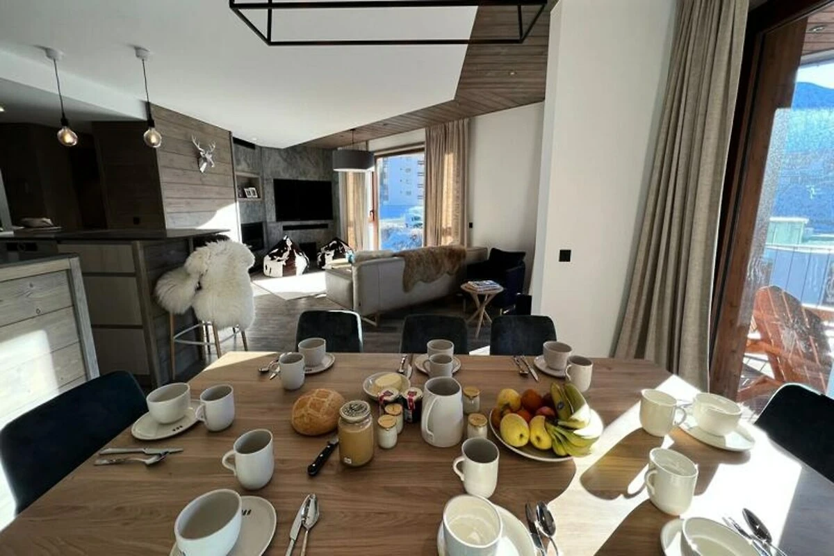 In het hart van Tignes Le Lavachet biedt dit prachtig gerenoveerde appartement van 120 m² een serene alpenretraite op slechts een steenworp afstand van de pistes en het bruisende centrum van de wijk. Dankzij de zuidwestelijke ligging baadt het Westpenthouse in natuurlijk licht en biedt het een prachtig uitzicht op de bergen. Het is de perfecte setting voor een onvergetelijke vakantie. Of u nu in de winter komt voor de skimogelijkheden van wereldklasse of in de zomer voor de adembenemende wandelpaden, deze locatie biedt ongeëvenaard gemak en charme. Het appartement biedt comfortabel plaats aan maximaal acht gasten, verdeeld over vier zorgvuldig ontworpen slaapkamers. De open woonkamer beschikt over een moderne keuken en een gezellige lounge met een flatscreen-tv, die uitkomt op een balkon waar u kunt ontspannen en genieten van de alpensfeer. Twee tweepersoonsslaapkamersuites hebben een eigen douche en toilet, terwijl een extra tweepersoonsslaapkamer en een kinderkamer met stapelbed voldoende ruimte bieden voor gezinnen of groepen. Een aparte badkamer en toilet dragen bij aan het gemak, waardoor dit huis ideaal is voor zowel ontspanning als functionaliteit. Gelegen in een rustige en goed onderhouden residentie, bent u binnen handbereik van de levendige voorzieningen van Tignes, waaronder winkels, restaurants en bushaltes. Hoewel het appartement geen parkeerplaats heeft, kunt u uw auto probleemloos uitladen dankzij de nabijgelegen openbare parkeergelegenheid en directe toegang tot het gebouw. Na een dag op de piste of het verkennen van de pistes kunt u genieten van de inbegrepen luxe services, zoals opgemaakte bedden bij aankomst, schoon beddengoed, welkomstgeschenken en een eindschoonmaak. Of u nu wordt aangetrokken door de sensatie van skiën, de rust van de bergen of de levendige lokale cultuur, dit stijlvolle alpenverblijf belooft een onvergetelijk verblijf in het hart van Tignes Le Lavachet.