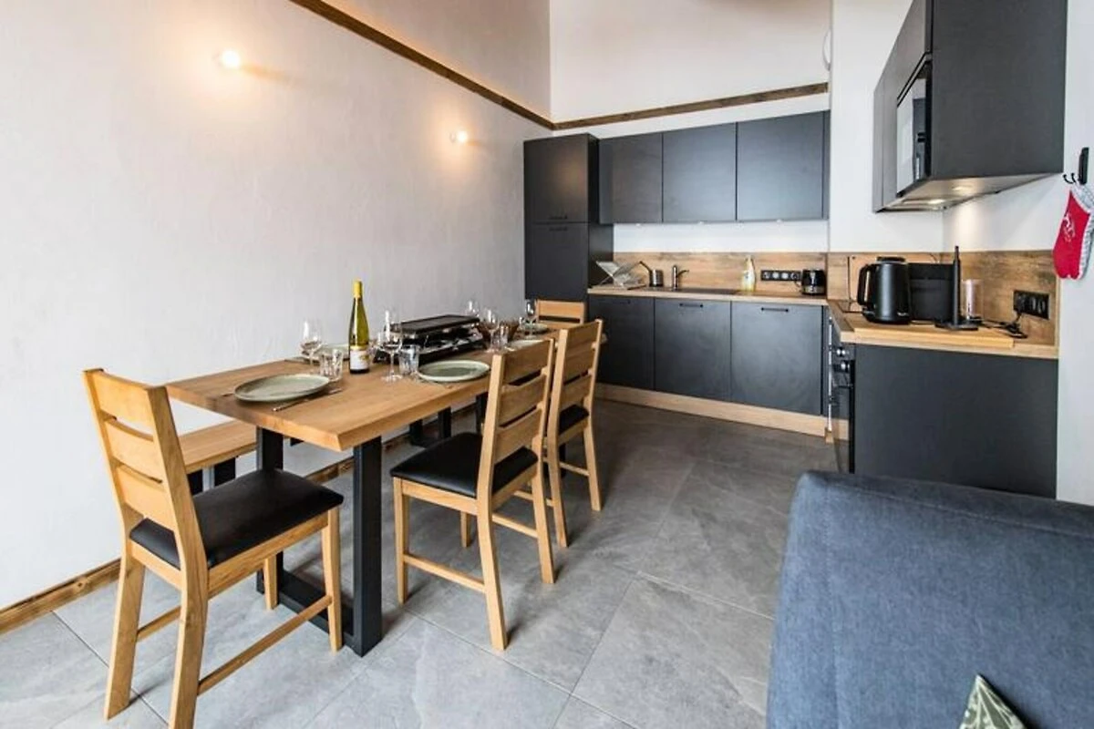 Hoog boven de pittoreske Mauriennevallei biedt dit elegante duplexappartement in residentie L'Olvera een luxe alpenverblijf op 1950 meter hoogte. Dankzij de toplocatie aan de voet van de pistes in Haute Valmeinier waant u zich in een wereld van sneeuwavonturen en serene bergcharme. Vanaf het moment van aankomst zetten het adembenemende uitzicht en de warme, moderne ambiance van het appartement de toon voor een werkelijk onvergetelijk verblijf.