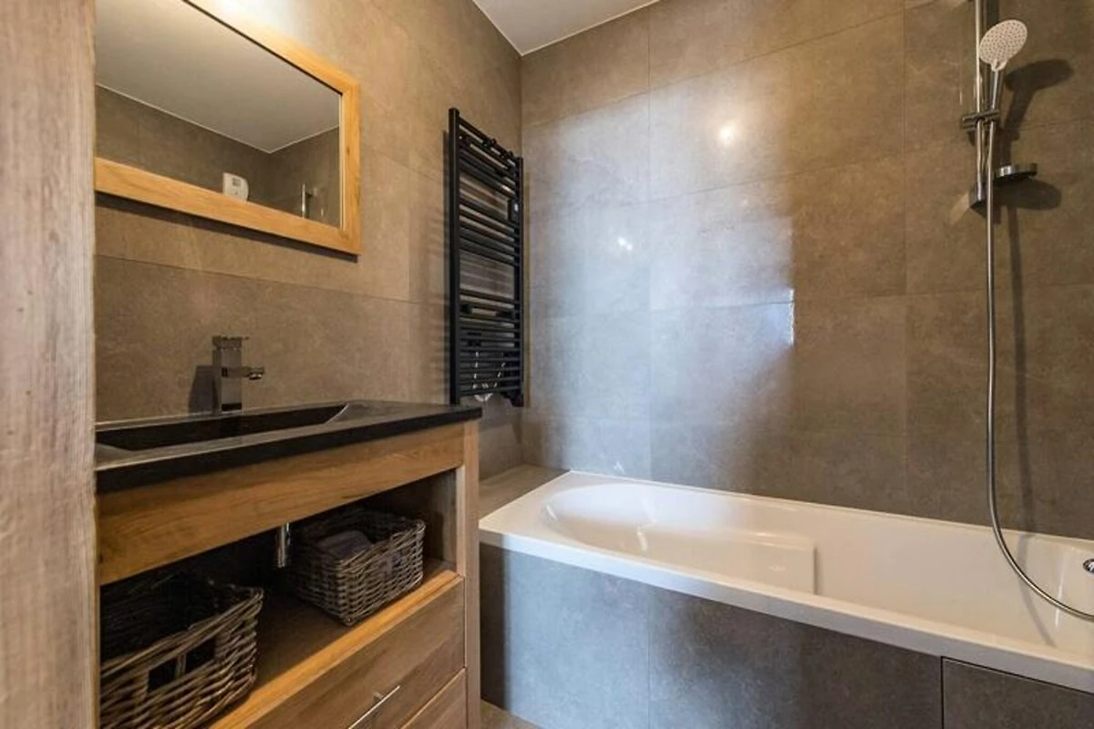 Dit ruime appartement is ontworpen met zowel comfort als stijl in gedachten en biedt plaats aan maximaal zes gasten, waardoor het perfect is voor gezinnen of groepen vrienden. Op de begane grond bevindt zich een master suite met een queensize bed en een eigen badkamer met douche, evenals een tweede slaapkamer met tweepersoonsbed, beide op het oosten gelegen om het ochtendlicht te vangen. Boven vindt u de open woonkamer met een gezellige lounge met een slaapbank, een eetgedeelte en een volledig uitgeruste keuken met moderne apparatuur. Stap het balkon van 14 m² op het oosten op en geniet van de frisse berglucht terwijl u geniet van uw ochtendkoffie of ontspant na een dag op de piste. Extra voorzieningen zijn onder andere een skiberging met een schoenendroger, een beveiligde ondergrondse parkeergarage met een laadstation voor elektrische auto's en wifi voor uw gemak.