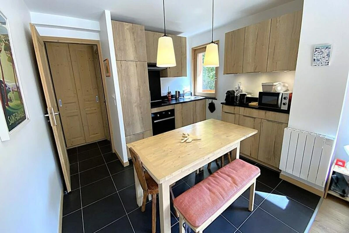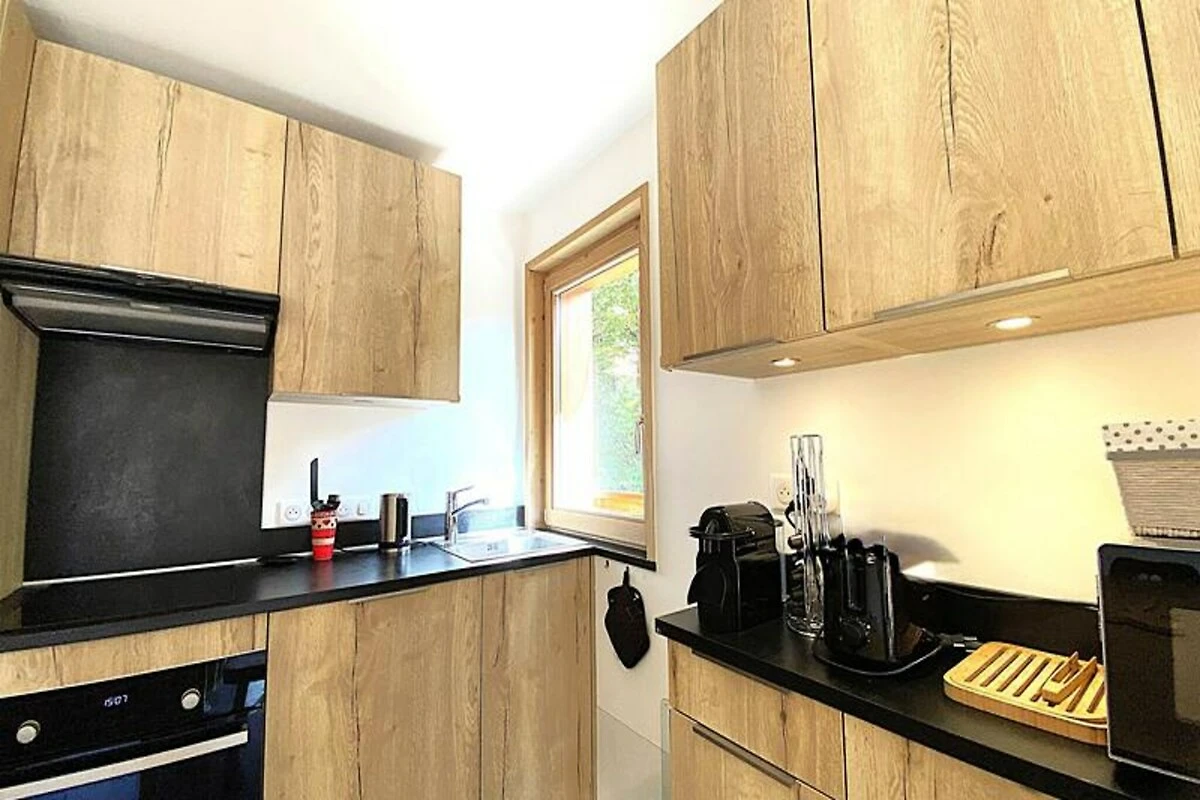 Met een oppervlakte van 57 m² biedt dit zorgvuldig ontworpen appartement comfortabel plaats aan maximaal zes gasten. De twee slaapkamers, elk met een tweepersoonsbed, bieden een rustgevende oase, terwijl de mezzanine met dakraam een vleugje alpine charme toevoegt met twee eenpersoonsbedden. De open keuken en woonkamer zijn volledig uitgerust met moderne apparatuur, waaronder een keramische kookplaat, oven, magnetron, vaatwasser en koelkast met vriezer, waardoor u gemakkelijk stevige maaltijden kunt bereiden na een dag vol avontuur. Extra voorzieningen zoals een televisie, wasmachine, skiberging en garage zorgen voor een zorgeloos en comfortabel verblijf.