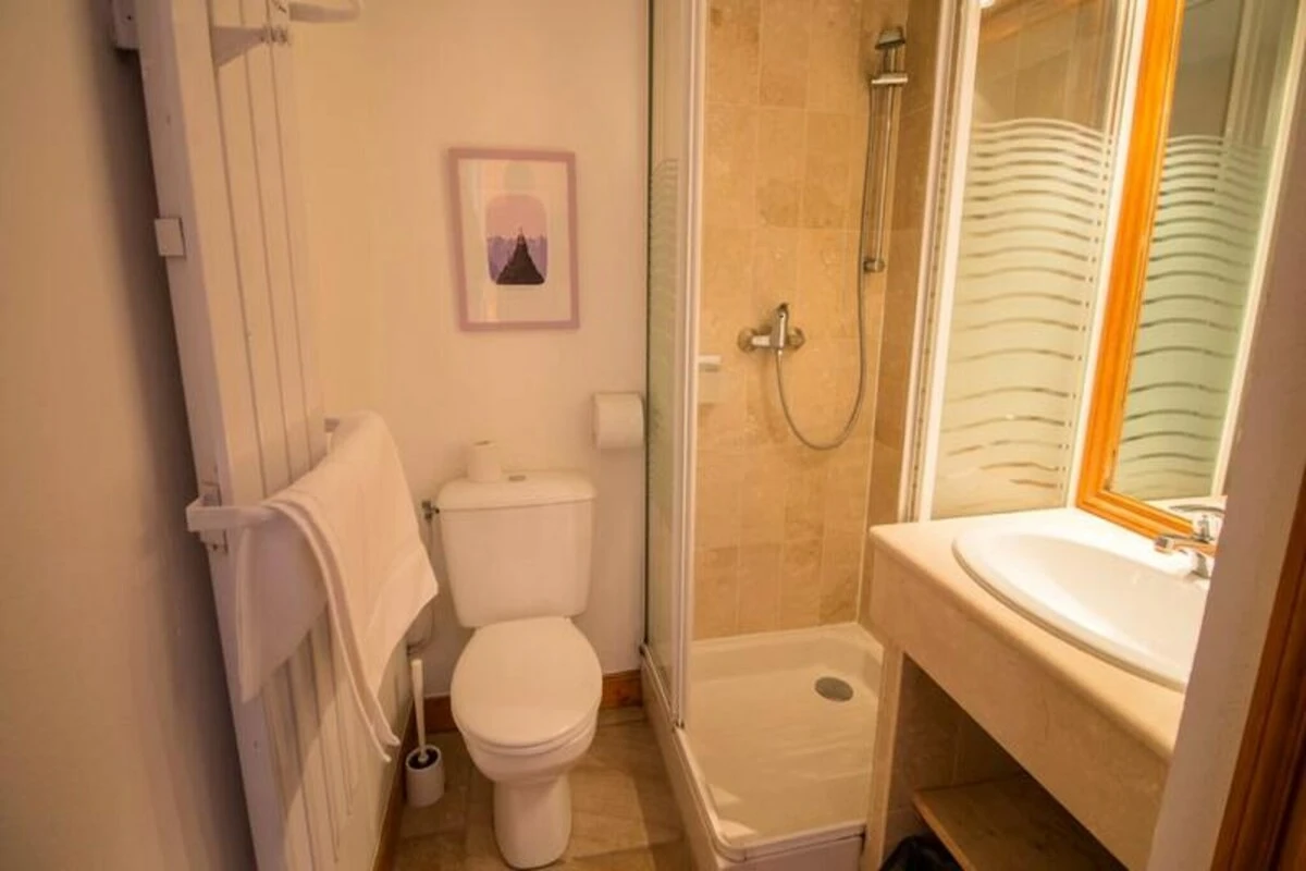 Het chalet beschikt over zeven prachtig ingerichte slaapkamers, elk met een eigen badkamer en toilet, waardoor privacy en comfort voor alle gasten gegarandeerd zijn. De volledig uitgeruste keuken en de uitnodigende woonkamer, compleet met open haard en houtkachel, creëren een warme en gastvrije sfeer voor ontspannen après-ski. Stap het terras op het westen op om te genieten van het uitzicht op de Alpen of berg uw spullen op in de speciale skiruimte. Met een overdekte parkeerplaats is het chalet even praktisch als charmant.