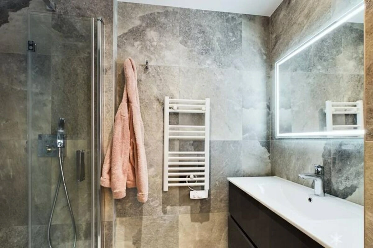 Hoog boven de Tarentaisevallei, waar de frisse berglucht de zintuigen prikkelt, biedt dit luxe appartement in de residentie DIAMANT DES CIMES een verfijnde oase in La Rosière 1850. Met een adembenemend uitzicht vanaf het terras op het zuiden en een locatie op slechts 500 meter van de pistes, combineert deze accommodatie elegantie en gemak voor een onvergetelijke bergvakantie. Of u nu komt voor wintersport of zomerwandelingen, de nabijgelegen shuttlehalte zorgt voor moeiteloze toegang tot de vele attracties in de omgeving. Stap binnen in dit ruime appartement van 91 m², zorgvuldig ontworpen over twee verdiepingen en geschikt voor maximaal acht gasten, waaronder zes volwassenen. De verfijnde inrichting en hoogwaardige meubels creëren een sfeer van ingetogen luxe. Twee slaapkamers zijn voorzien van grote bedden van 160x200 cm en een eigen badkamer met douche, terwijl een derde slaapkamer een comfortabel tweepersoonsbed en een eigen badkamer met een wasmachine biedt. De mezzanine, uitgerust met een stapelbed, is perfect voor de jongere gasten. Een volledig uitgeruste keuken met moderne apparatuur, waaronder een Nespresso-koffiezetapparaat en inductiekookplaat, maakt thuis dineren een genot. Extra voorzieningen zoals een skikluisje, beveiligde parkeergelegenheid en inbegrepen linnengoed zorgen voor een zorgeloos verblijf. \n\nResidence DIAMANT DES CIMES verrijkt uw ervaring met een spa met een sauna en douches, en een speelkamer met wifi en een pooltafel. Na een dag op de piste of het verkennen van de nabijgelegen paden kunt u ontspannen in de comfortabele lounge of genieten van het serene uitzicht op de bergen vanaf uw privéterras. \n\nLa Rosière 1850 is een toegangspoort tot avontuur en biedt in gelijke mate skiën, wandelen en culturele ervaringen. Trakteer uzelf op de ultieme alpine ontsnapping in deze uitzonderlijke omgeving, waar elk detail is ontworpen voor uw comfort en plezier. Boek vandaag nog uw verblijf en creëer blijvende herinneringen in het hart van de Franse Alpen.