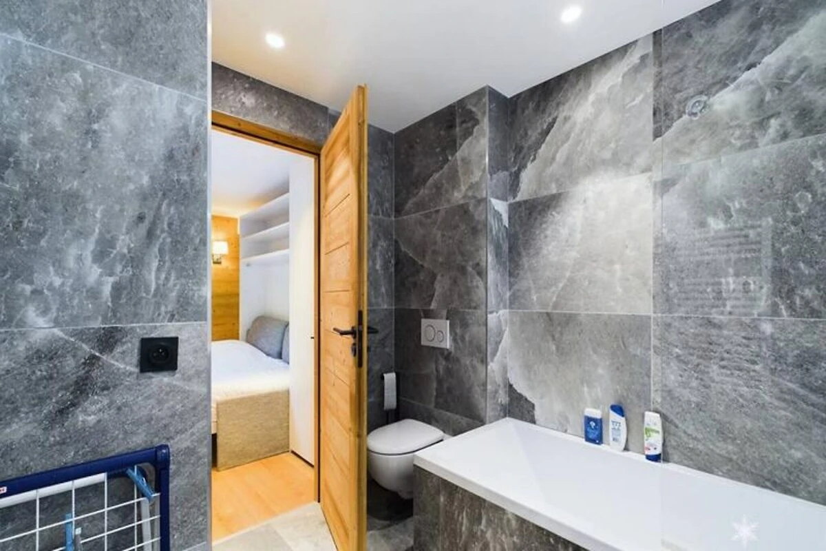 Hoog boven de Tarentaisevallei biedt dit elegante alpenverblijf een harmonieuze mix van luxe en comfort in het beroemde La Rosière 1850. Stelt u zich eens voor dat u wakker wordt met een adembenemend uitzicht op de bergen vanaf uw privéterras op het zuiden, waar de frisse berglucht de toon zet voor een dag vol avontuur of ontspanning. Of u nu komt om te skiën op de ongerepte pistes of gewoon te ontspannen in een serene omgeving, deze accommodatie belooft een onvergetelijke vakantie. De verfijnde inrichting van de residentie, samengesteld door een interieurontwerper, complementeert de prachtige omgeving en creëert een warme en uitnodigende sfeer. Dit 4-kamerappartement met slaapnis, verdeeld over twee verdiepingen en 87 m², biedt plaats aan maximaal 8 gasten, waaronder 6 volwassenen. Elke slaapkamer is zorgvuldig ontworpen voor comfort, met hoogwaardig Italiaans meubilair en een eigen badkamer. De slaapnis met stapelbedden voegt een knusse toets toe aan de jongere gasten. De volledig uitgeruste keuken is voorzien van eersteklas apparatuur, van Miele tot Smeg, voor moeiteloze maaltijdbereiding. Extra voorzieningen zoals een wasmachine, droger en beveiligde parkeergelegenheid maken uw verblijf compleet, terwijl de skiberging en de pendelbushalte de toegang tot de pistes vergemakkelijken.\n\nResidence Diamant des Cimes ligt op slechts 500 meter van de skipistes en op 300 meter van de lokale winkels en biedt gemakkelijke toegang tot alles wat u nodig heeft. Na een dagje skiën of verkennen kunt u ontspannen in de spa met sauna of een gezellig potje poolen in de lounge. De nabijgelegen pendeldienst zorgt voor gemakkelijk reizen binnen het resort, terwijl de charme en levendige sfeer van La Rosière eindeloze mogelijkheden bieden om te dineren, winkelen en après-skiën.\n\nOf u nu op zoek bent naar spannende buitenavonturen of rustige momenten in een luxueuze alpine omgeving, deze accommodatie biedt de perfecte balans. Boek vandaag nog uw verblijf en ervaar de magie van La Rosière 1850.