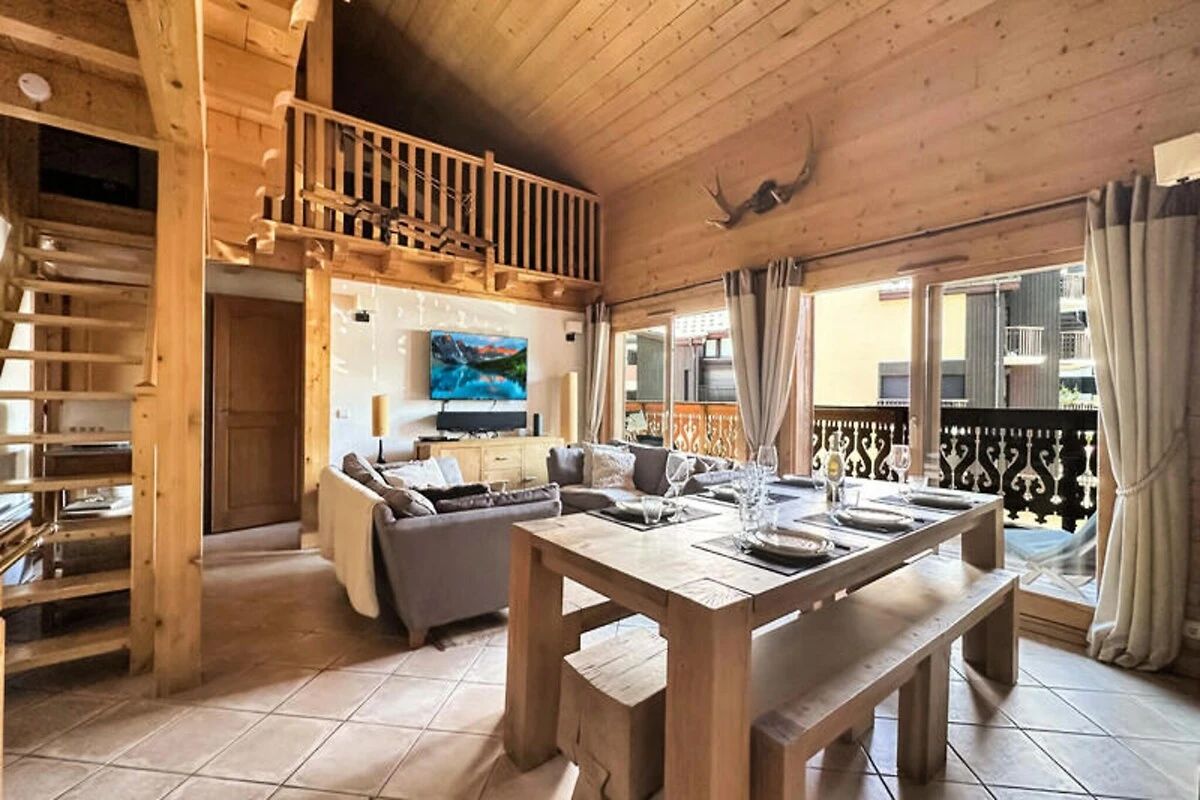 In het hart van het pittoreske dorpje Les Carroz nodigt dit elegante duplex appartement u uit om de charme van het leven in de Alpen te ervaren met een vleugje moderne verfijning. De residentie baadt in natuurlijk licht dankzij de zuidelijke ligging en biedt een warme en gastvrije sfeer, perfect voor het creëren van onvergetelijke herinneringen met familie of vrienden. Of u nu komt voor wintersport of zomeravonturen, de centrale ligging zorgt ervoor dat u altijd dicht bij de actie bent en tegelijkertijd kunt genieten van een oase van rust. \n\nMet een oppervlakte van 81 m² (97 m² vloeroppervlak) biedt dit prachtig ontworpen appartement plaats aan maximaal acht gasten, verdeeld over drie slaapkamers en een slaapgedeelte op de mezzanine. De master suite beschikt over een eigen badkamer met douche, terwijl de extra badkamer en het aparte toilet geschikt zijn voor grotere groepen. De ruime woonkamer beschikt over een volledig uitgeruste keuken met een oven, vaatwasser, wasmachine en zelfs een raclette-apparaat voor gezellige avonden. Kom samen aan de grote boerentafel of ontspan in de gezellige lounge na een dag de prachtige omgeving te hebben verkend. \n\nDe accommodatie ligt op slechts 100 meter van de skibushalte en biedt naadloze toegang tot de pistes, waardoor het een ideale uitvalsbasis is voor skiliefhebbers. In de zomer verandert het dorp in een paradijs voor wandelaars, fietsers en natuurliefhebbers, met paden die leiden naar adembenemende vergezichten op de omliggende bergen. De ondergrondse parkeerplaats en skiberging maken uw verblijf praktisch, terwijl de nabijheid van lokale winkels, restaurants en voorzieningen ervoor zorgt dat alles wat u nodig heeft binnen handbereik is. \n\nOf u nu op zoek bent naar spannende buitenavonturen of rustige momenten in het hart van de Alpen, dit duplexappartement in Les Carroz belooft een vakantie vol comfort, gemak en tijdloze alpine charme.