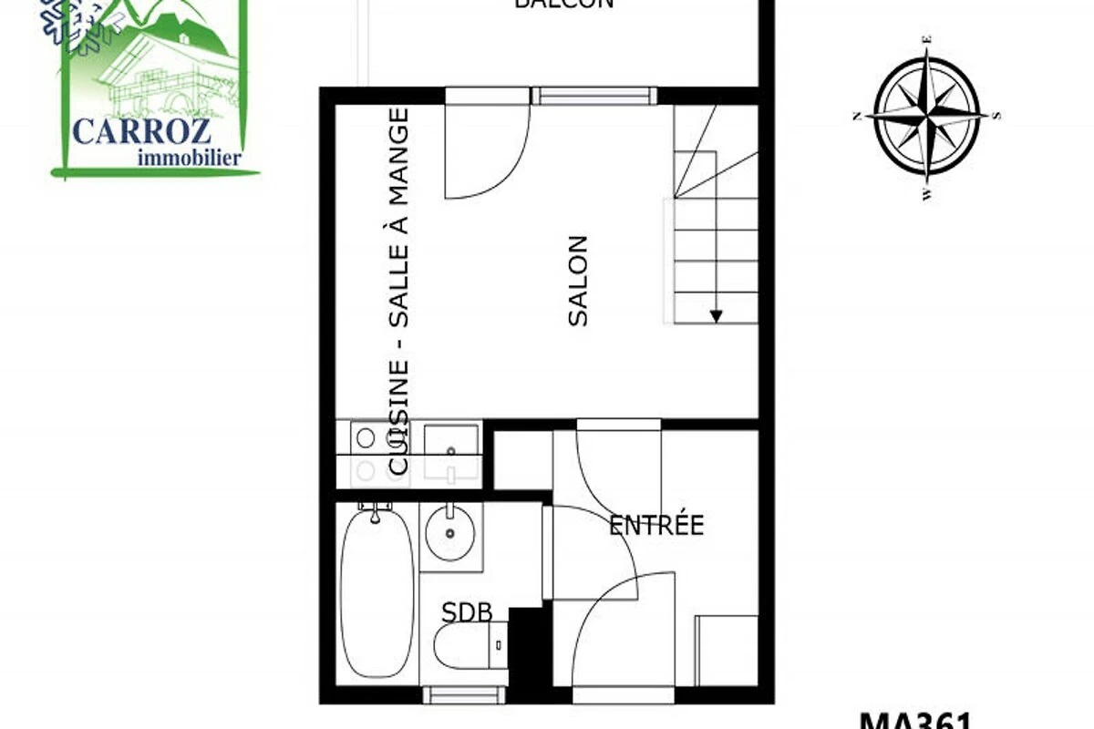 Appartement gelegen in de prachtige residentie "Le Mont Blanc A", in het dorpscentrum, vlakbij de bioscoop en de babyclub.