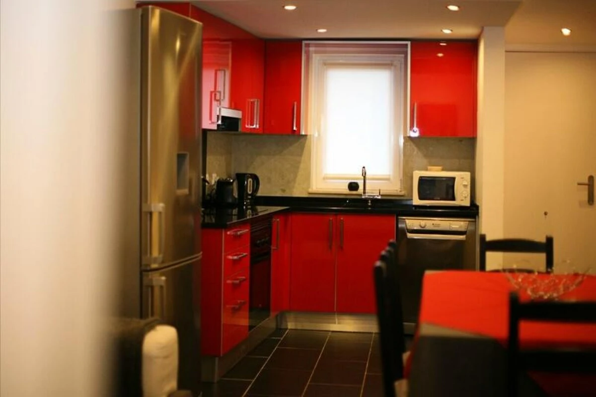 Binnen beschikt het appartement over drie ruime slaapkamers, elk met comfortabele tweepersoonsbedden, die zorgen voor een rustgevende nachtrust voor maximaal zes gasten. De woonkamer nodigt u uit om te ontspannen na een dag vol avonturen, terwijl de volledig uitgeruste keuken klaarstaat om met gemak heerlijke maaltijden te bereiden. Hoewel wij alle benodigde kookgerei leveren, zijn kruiden en schoonmaakmiddelen niet inbegrepen. Moderne voorzieningen en een gezellige sfeer maken deze ruimte een echt thuis weg van huis.