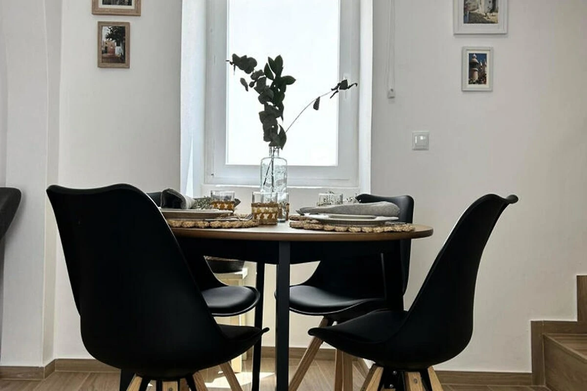 Binnen is het huis zorgvuldig ontworpen om comfort te combineren met de traditionele charme van de Algarve. De ruimte beschikt over drie gezellige slaapkamers, een volledig uitgeruste keuken om heerlijke maaltijden te bereiden en een lichte woonkamer met een eetgedeelte binnen. Twee moderne badkamers met douche en een extra gastentoilet zorgen voor gemak voor iedereen. De balkons zijn het hoogtepunt van de accommodatie: één met ligstoelen voor luie middagen, de andere met een eettafel en een barbecue voor avonden buiten onder de sterrenhemel. Wifi en een televisie zorgen voor uw entertainment, wat zorgt voor een comfortabel en verbonden verblijf.