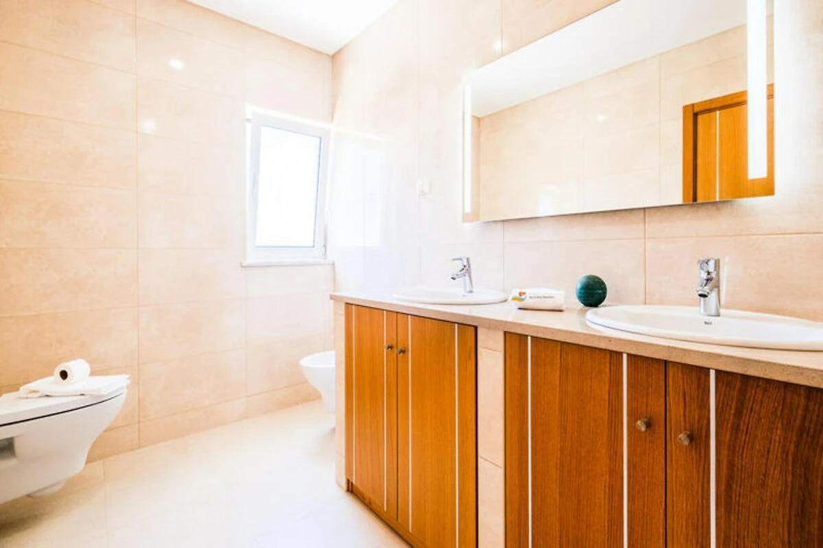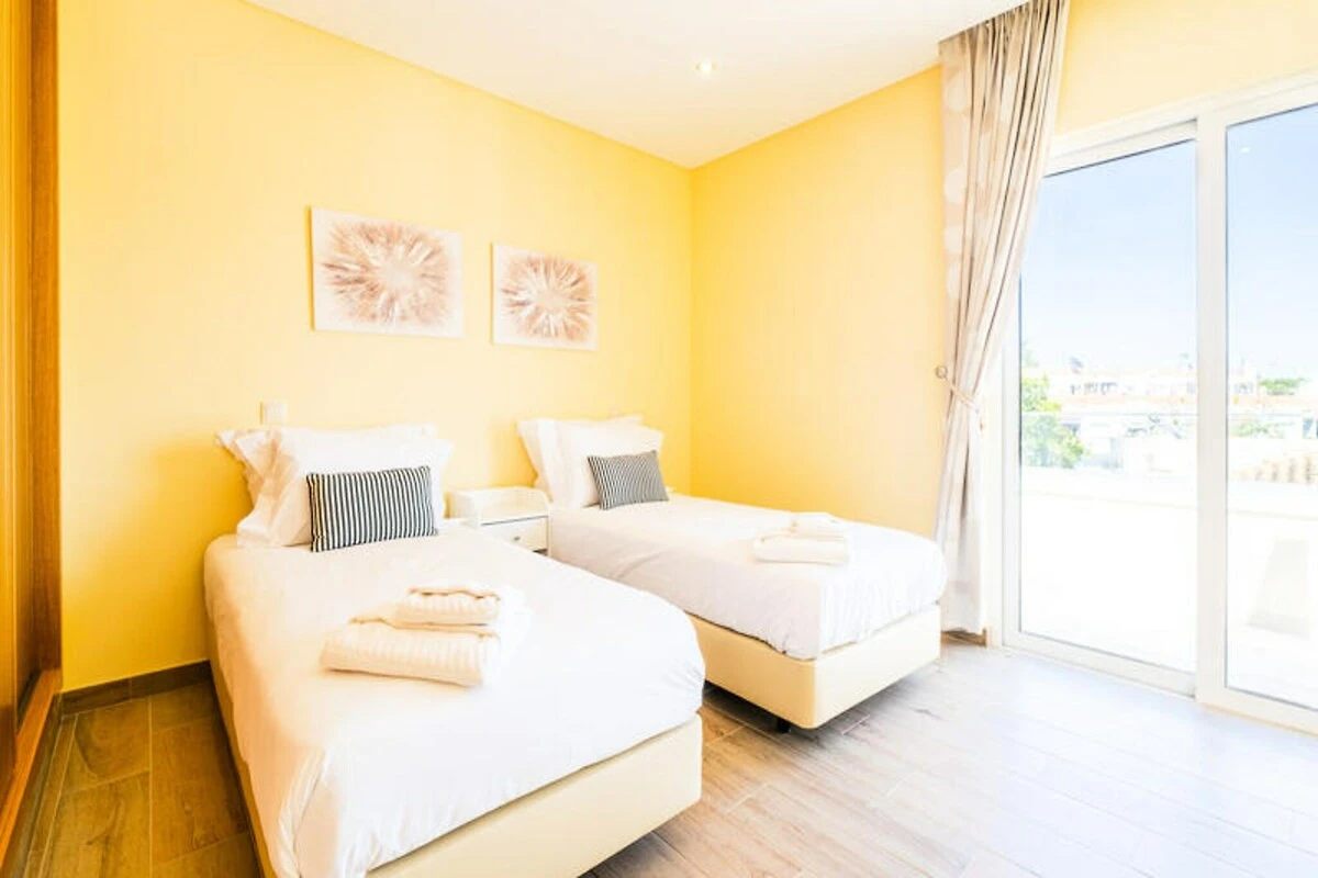 De villa beschikt over vier ruime slaapkamers, waarvan er drie een eigen badkamer hebben, wat privacy en gemak voor alle gasten garandeert. Een strakke, volledig uitgeruste keuken komt uit in een gezellige woon- en eetkamer, waar een grote tafel iedereen uitnodigt om te eten en te lachen. Buiten wacht een royaal zwembad, omringd door ligstoelen en een zonnige barbecueplek, perfect om buiten te dineren onder de Portugese hemel. Voor extra gemak beschikt de villa over een gastenbadkamer en een garage met plaats voor maximaal drie auto's.